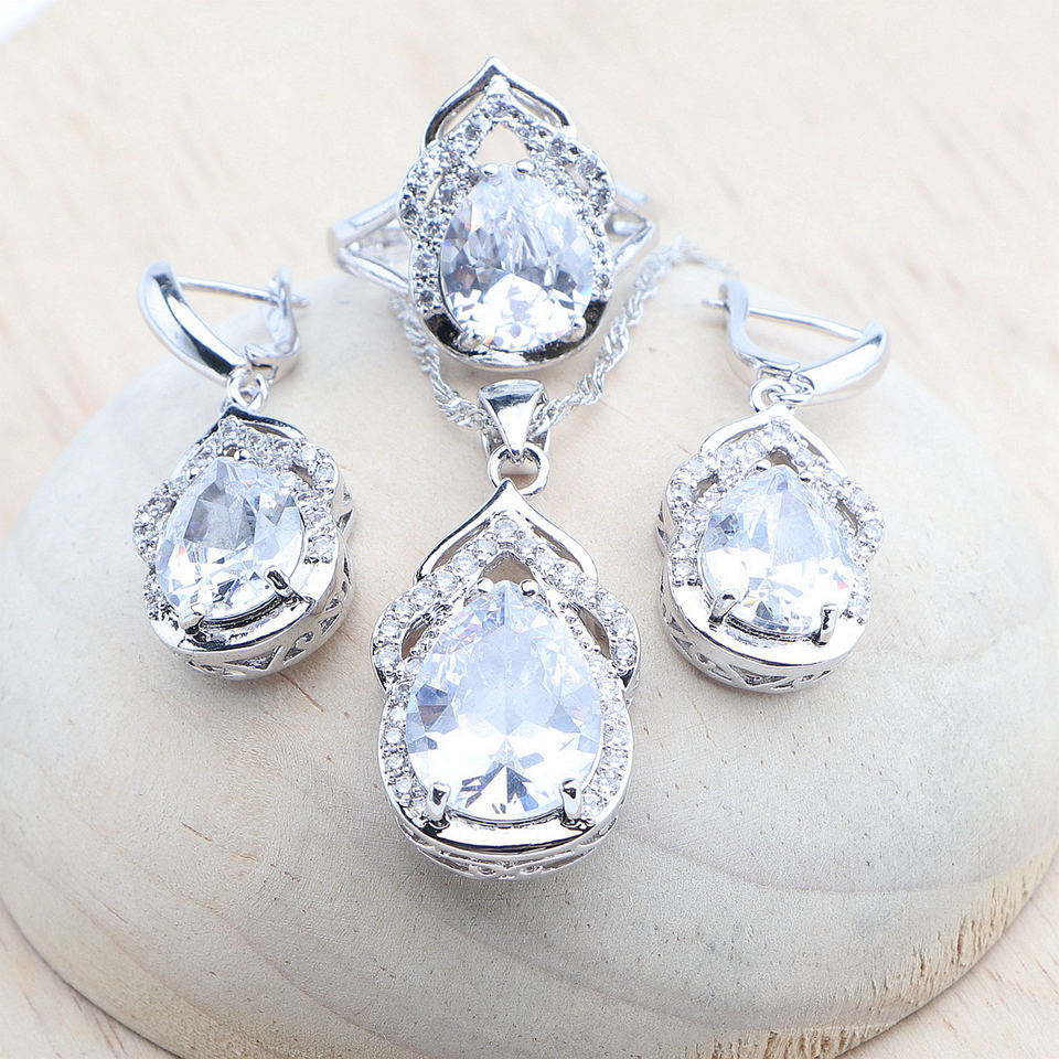 925 Plata verde esmeralda conjuntos de joyas boda blanco circón Topacio nupcial piedras pendientes anillo colgante collar conjunto para mujer