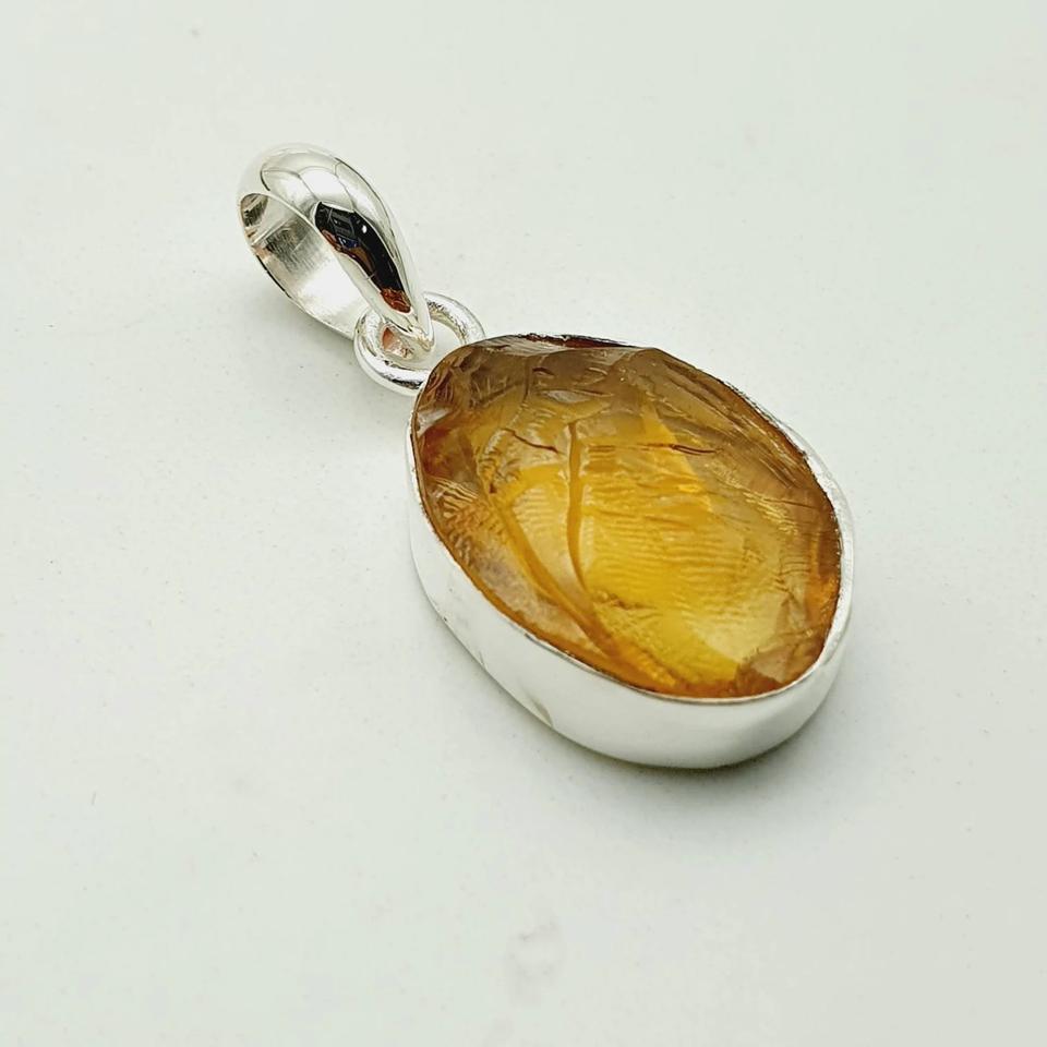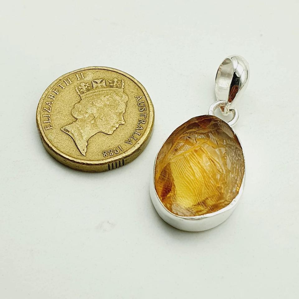 Collar Unisex de Plata de Ley 925 con Colgante de Citrino Natural en Bruto, Gema Natural, Estilo Moderno Cristiano, con Cadena