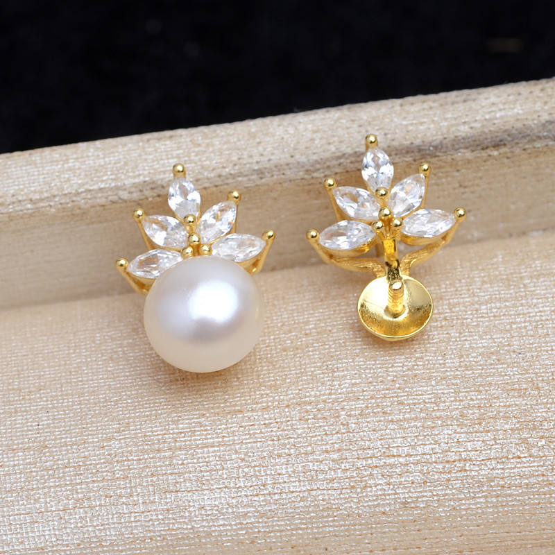 Accesorio de Plata 925 con Forma de Concha de Caballo, Bandeja Vacía para DIY, Producto Semiterminado Hueco 5844, 15.5-15.7, Juego para Accesorios de Joyería con Perlas