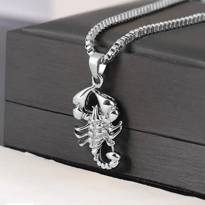 Collar con Colgante de Escorpión de Plata 925, Cadena de Caja, Unisex, Clásico, para Uso Diario, Color Oro Blanco