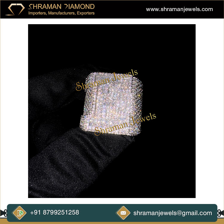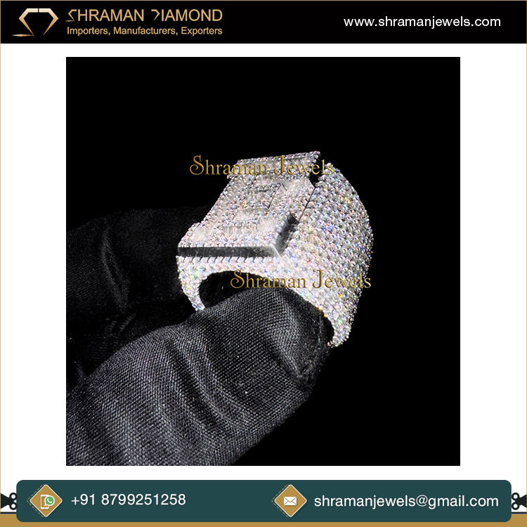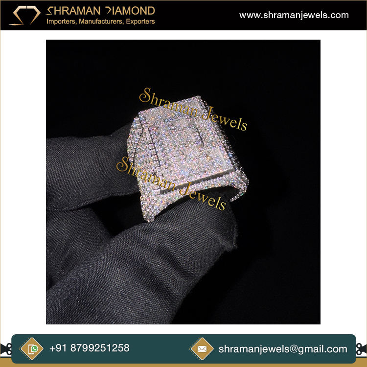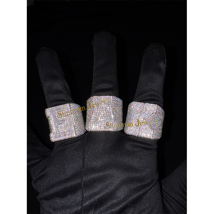 Anillo Hip Hop con nombre y letra inicial personalizada con diamantes Moissanite helados