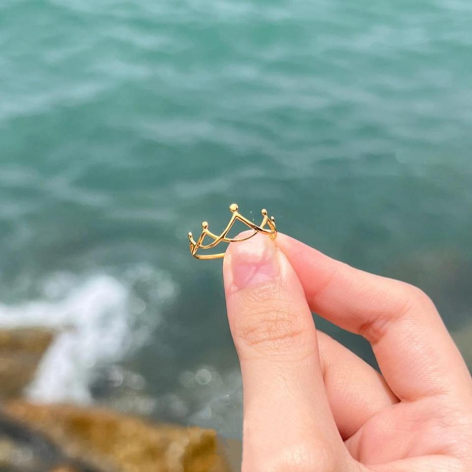 Anillo de Corona Chapado en Plata 925 y Oro de 18K, Estilo Princesa, Ligero y Lujoso, Diseño Hueco Exquisito para Mujer
