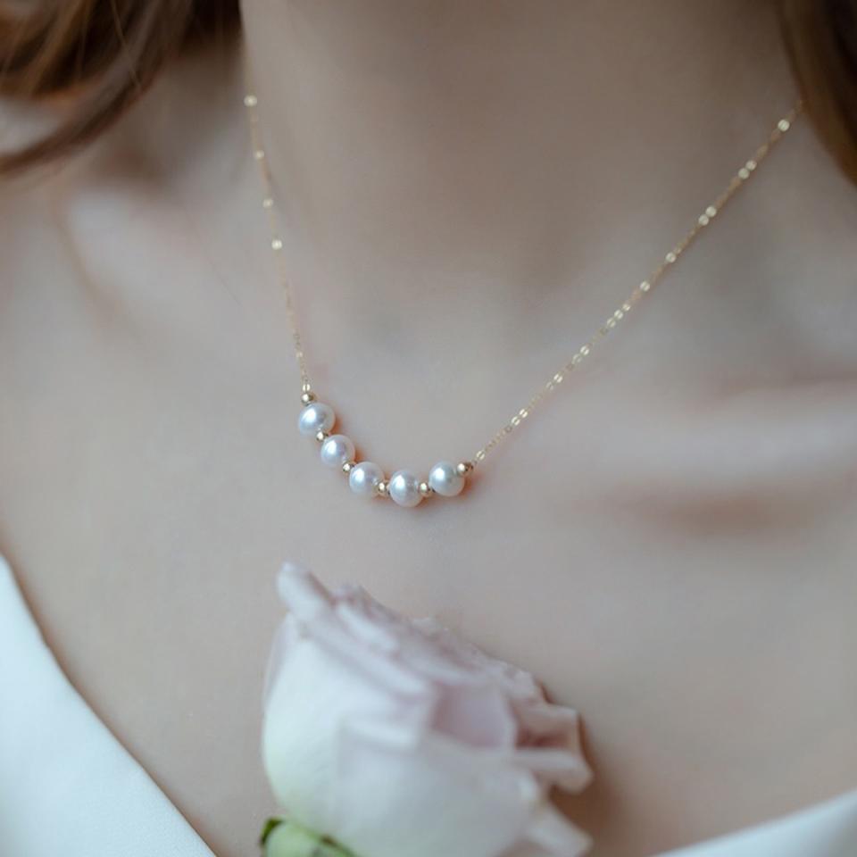 Collar de Perlas de Agua Dulce Naturales con Baño de Plata 925 y Oro de 18K, Cadena de Clavícula Tipo Frijol, Estilo Sonrisa, Pequeño, Tipo Camino que Lleva a la Orilla
