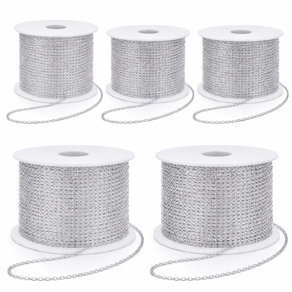 Cadena de Cable Plateada en Plata 925 de 2.5mm, Cadena para Joyería Antideslustre, Sin Níquel, Rollo, Suministros para DIY, Proveedor Mayorista OEM