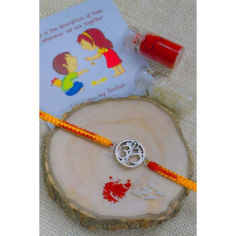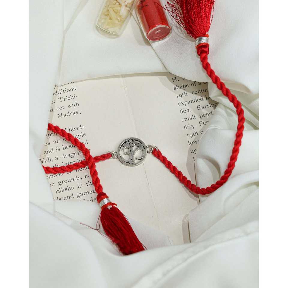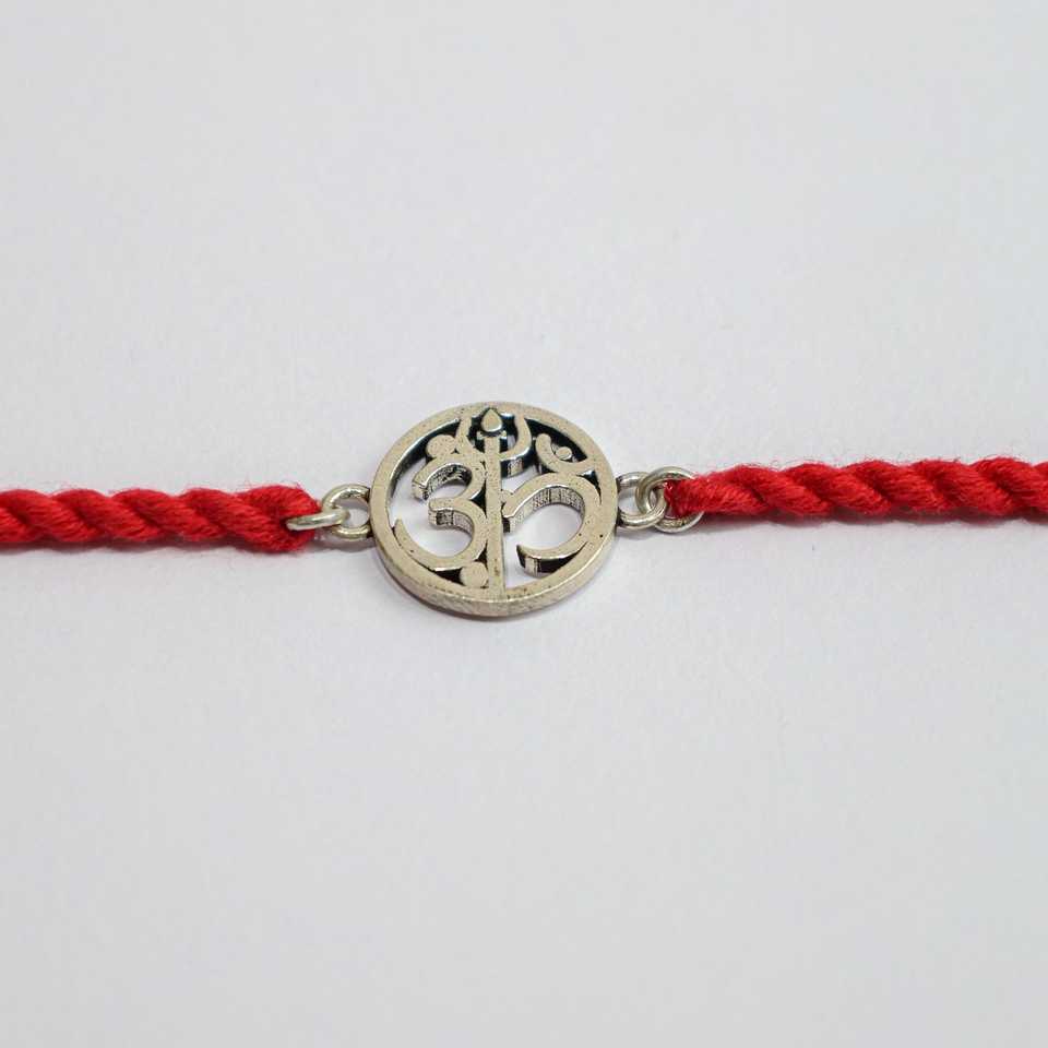 Rakhi de Plata 925 con Colgante de Om, Joyería Rakhi con Diamante y Perla, Hecho a Mano en India para Fiestas
