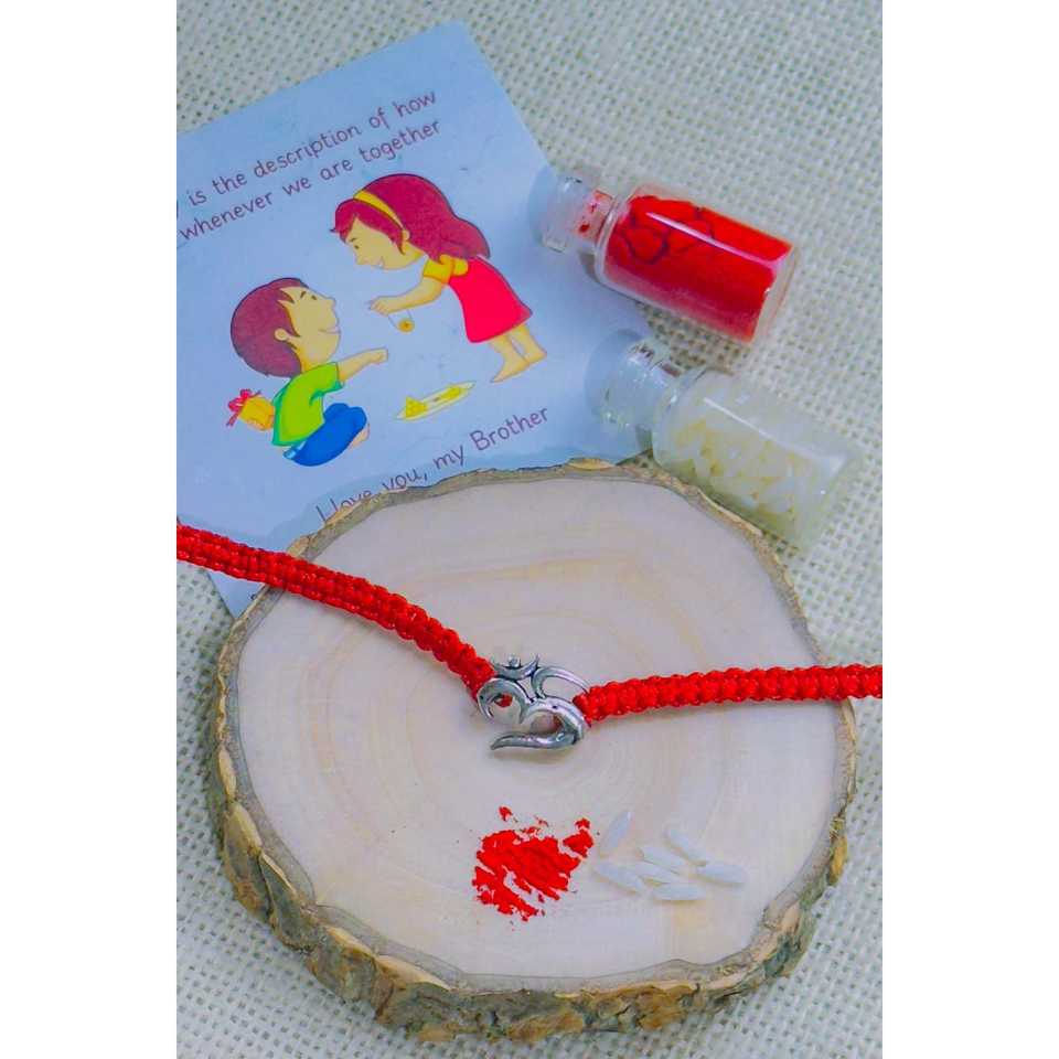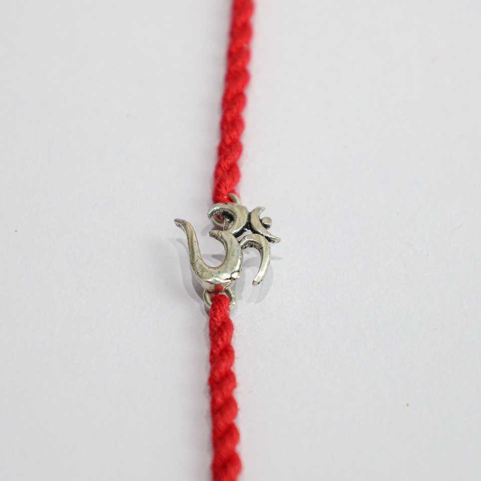 Rakhi de Plata 925 con Borla Om Divina, Elegante Rakhi con Patrón de Símbolo Divino para Hermana