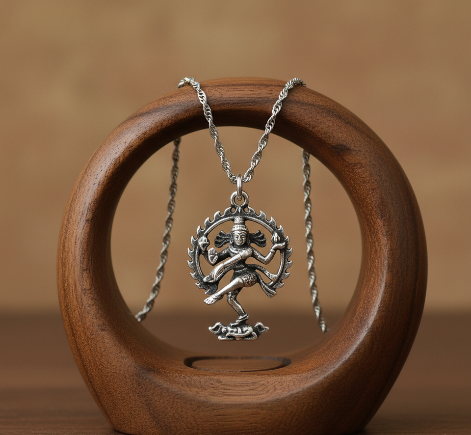 Collar de cadena de eslabones de plata 925 con baño de rodio, colgante espiritual Om Natraja chapado en oro, con diseño minimalista de animal y engaste de bisel, para uso diario.