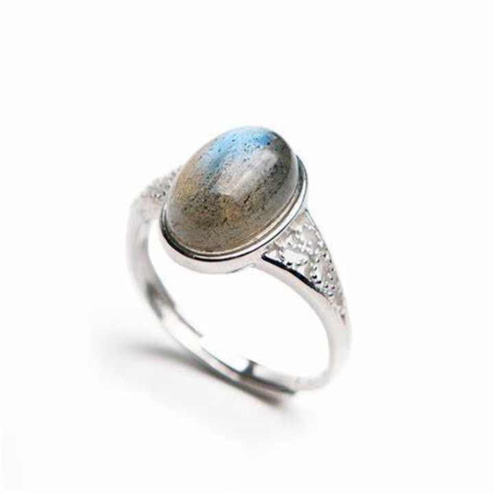 Anillo de Plata 925 con Labradorita Blanca y Piedra Lunar, Estilo Religioso Cristiano, Chapado en Oro Rosa de Moda