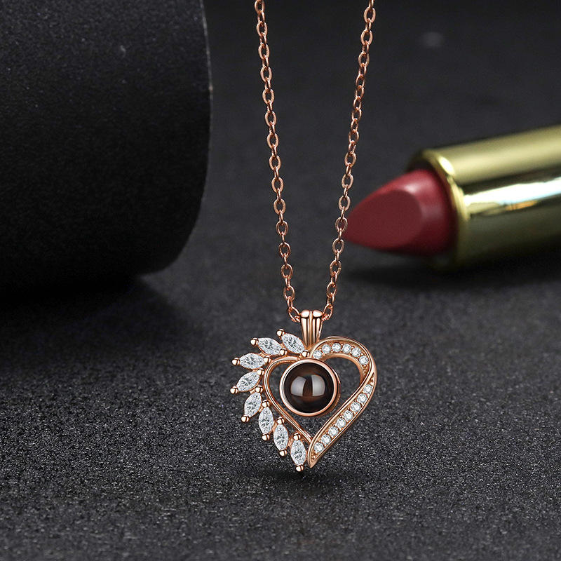Collar de proyección de corazón romántico de plata 925 100 idiomas colgante grabado con foto personalizada directo de fábrica al por mayor envío rápido