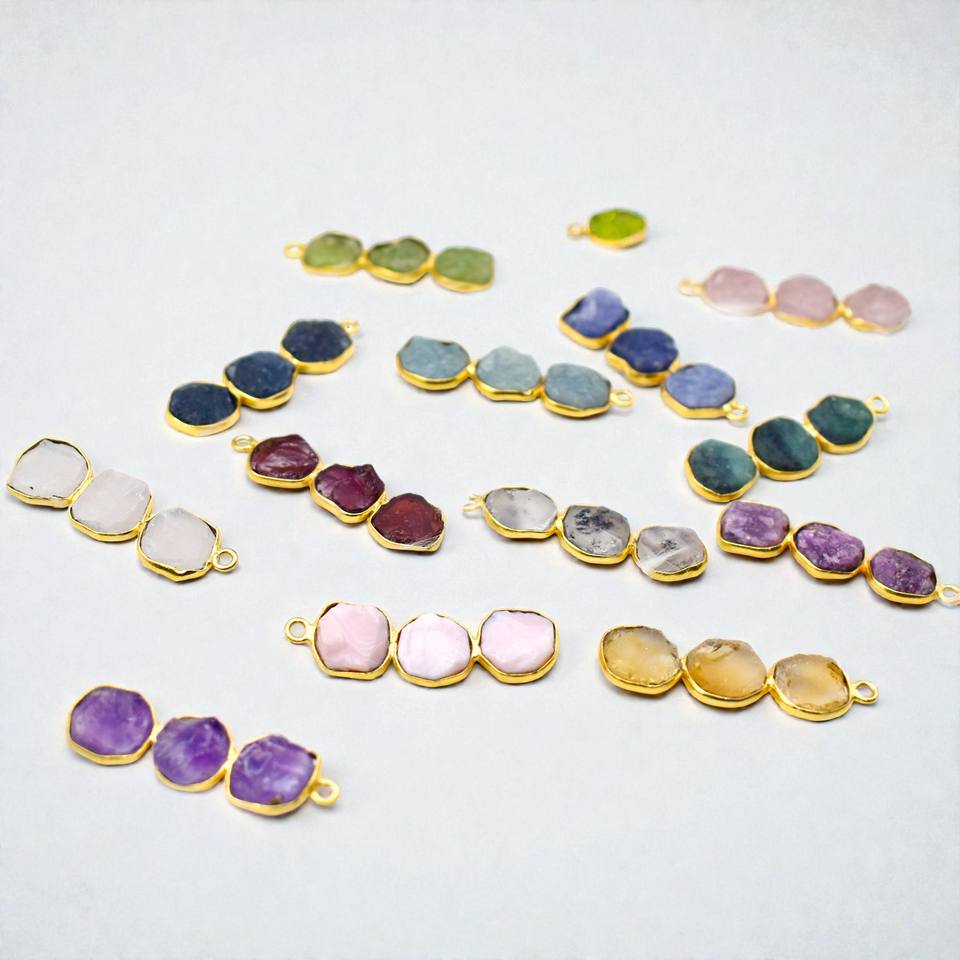 Conector de Plata 925 con Rubí en Bruto para Joyería Hecha a Mano - Chapado en Oro, Venta al por Mayor, Joyería DIY