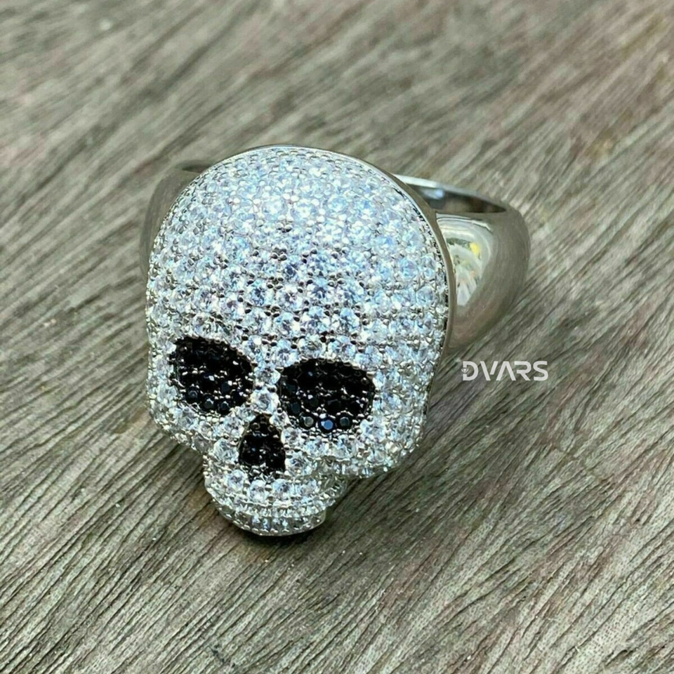 Anillo de Calavera Redonda de Plata 925 con Moissanita VVS para Hombre, Estilo Hip Hop Único para Fiestas, con Efecto Iced Out, Regalo de Boda, Chapado en Oro Blanco