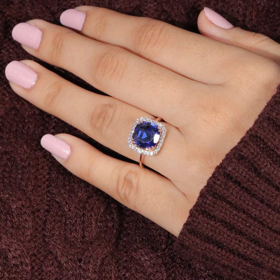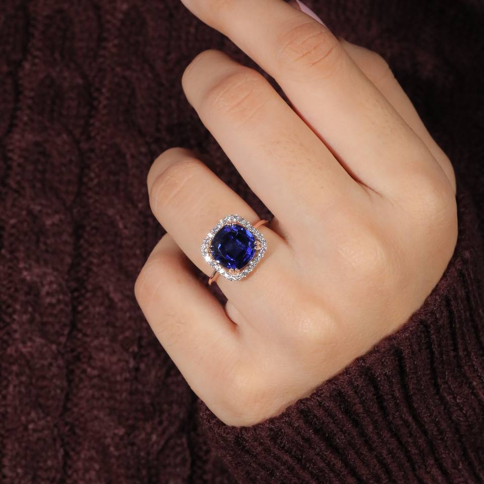 Anillo de plata 925 para mujer con hermosas piedras preciosas de arenisca azul Wet-5,83 Diamond Anillos de compromiso de boda finos Certificado IGI