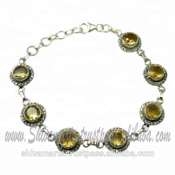 Venta caliente 925 pulsera de plata sólida citrino CZ Multi piedras preciosas joyería de moda cara para fiestas moda directa