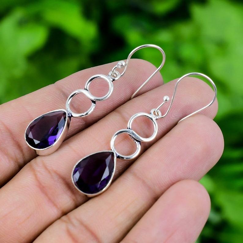 925 Solid Silver Classical Earrings Jewelry for Women 925 Sterling Silver Amethyst Gemstone Boho Style Handmade Earring Gift for