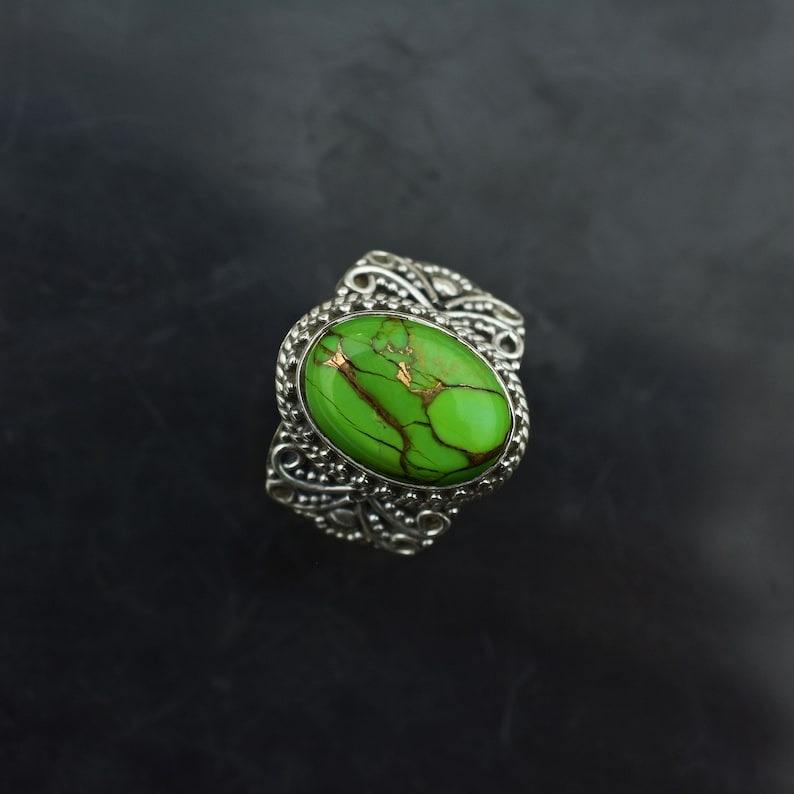 Anillo clásico de plata sólida 925, joyería para mujer, Plata de Ley 925, piedra preciosa turquesa, estilo bohemio, anillo hecho a mano, regalo para mamá