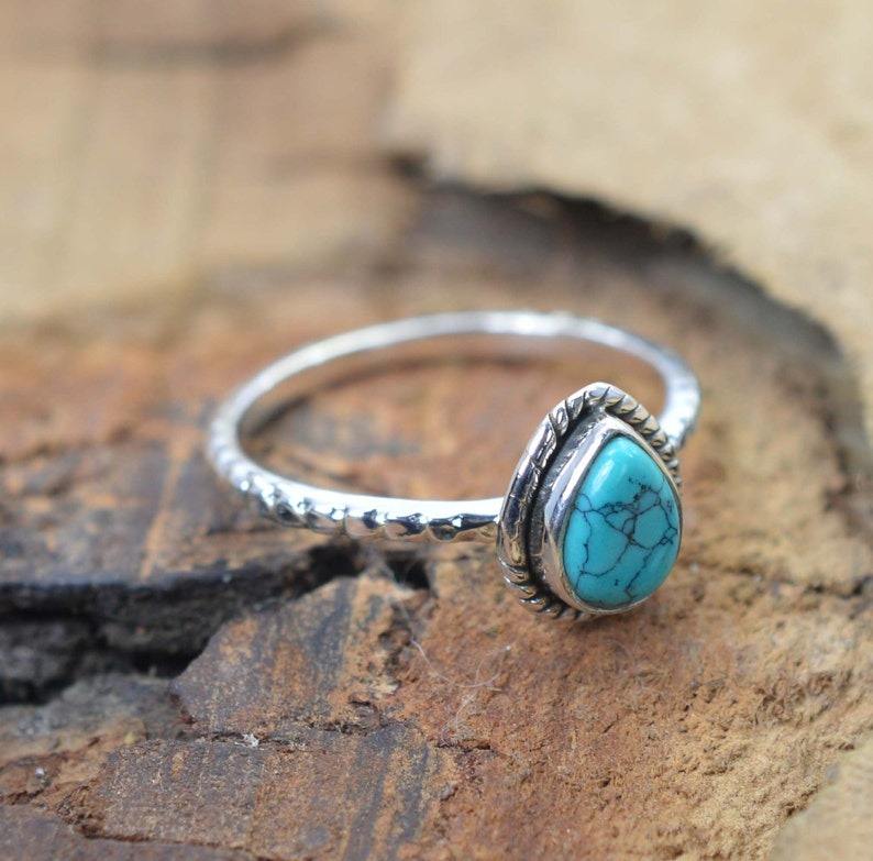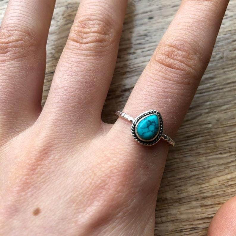 Anillo clásico de plata maciza 925, joyería para mujer, Plata de Ley 925, piedra preciosa turquesa, estilo bohemio, anillo hecho a mano, regalo para mamá