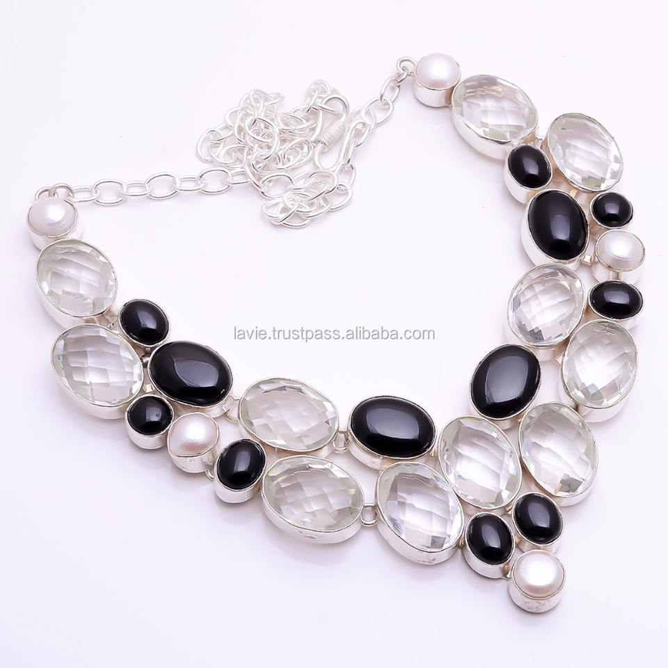 Cuarzo Amethyts Verde, Ónix Negro, PerlaPiedra principal
