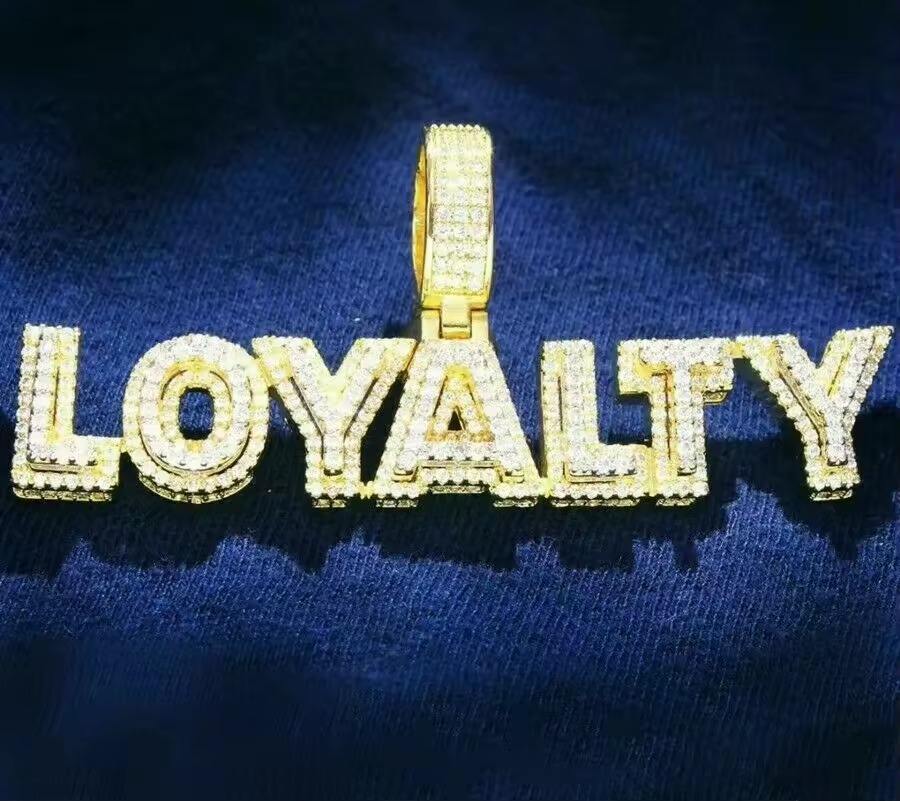 Colgante de Plata Sólida 925 con Doble Capa y Letras Incrustadas, Estilo Hip Hop, con Moissanita VVS, Bicolor, con Iniciales, para Regalo