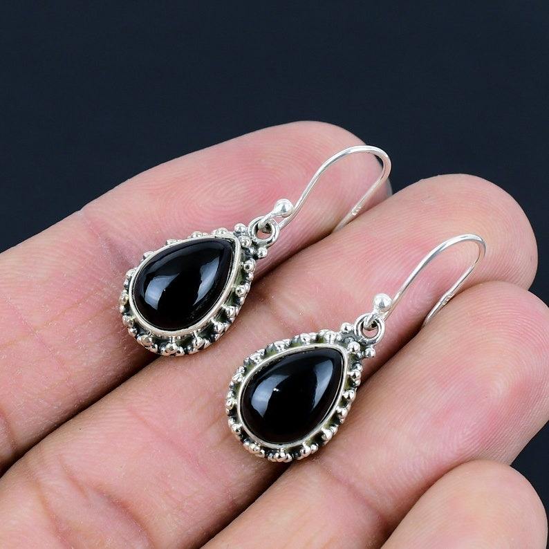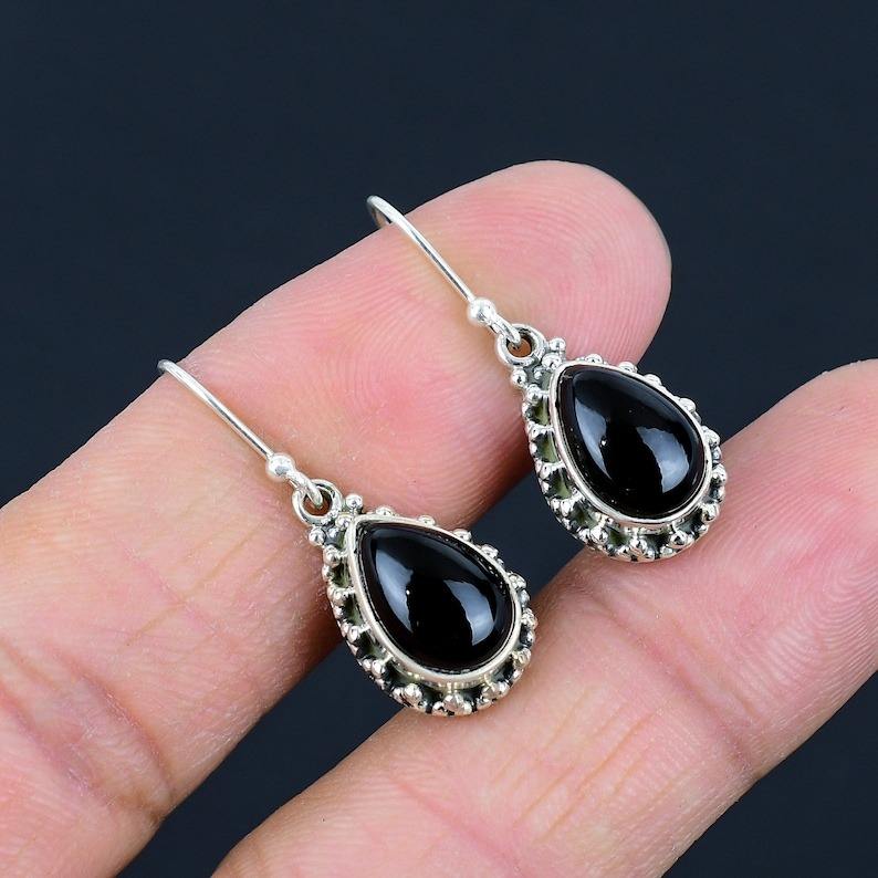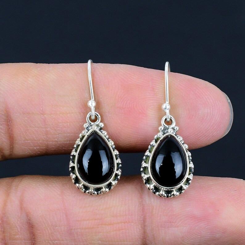 925 plata esterlina sólida negro Onyx Spinner pendientes piedras preciosas hechos a mano pendientes colgantes plata al por mayor 925 sello joyería