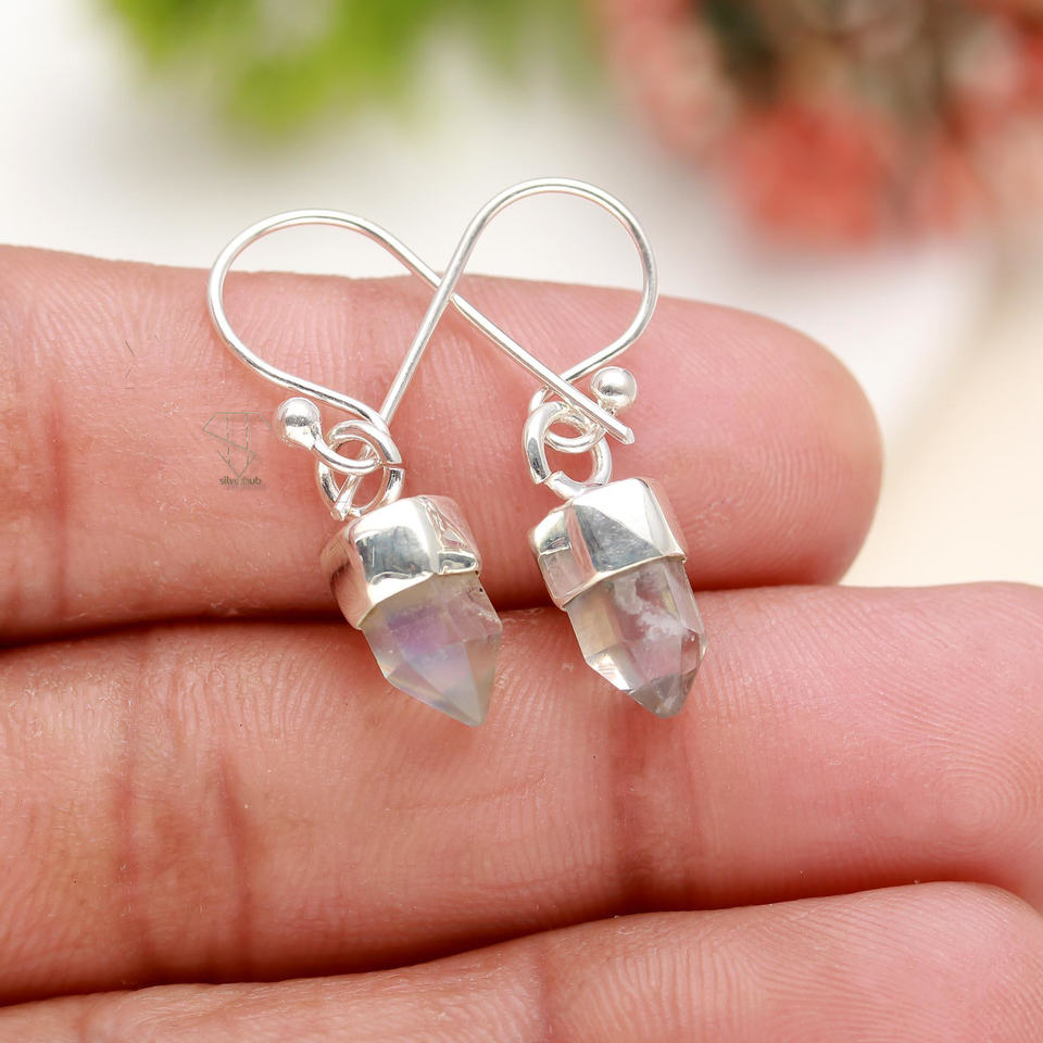Nombre del producto:925 plata esterlina natural Arco Iris Moonstone Pendientes