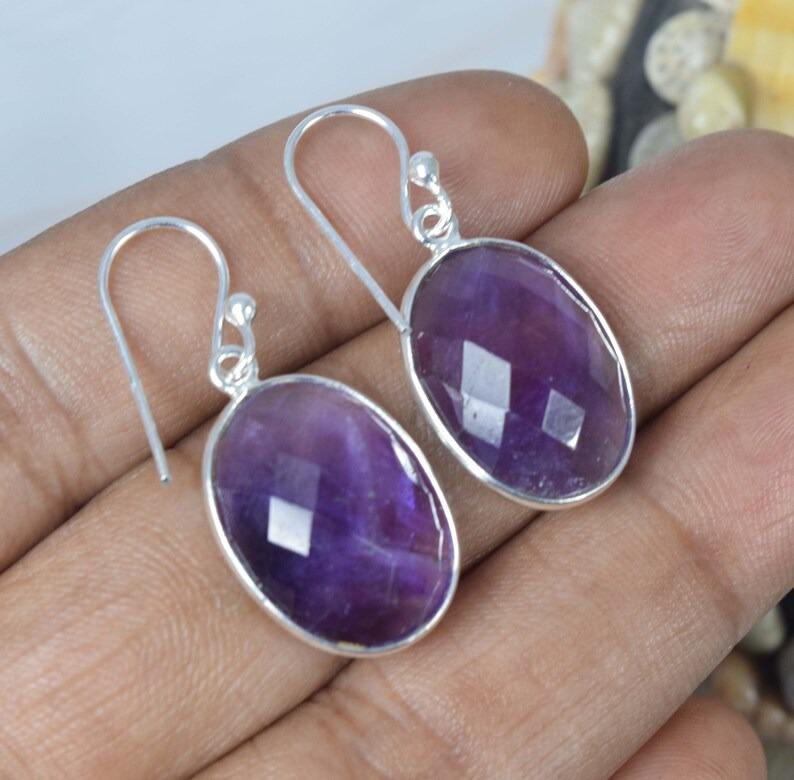 Pendientes de Plata de Ley 925 sólida para niñas, pendientes de joyería de plata para mujer, Pendientes colgantes de piedras preciosas de amatista de alta calidad