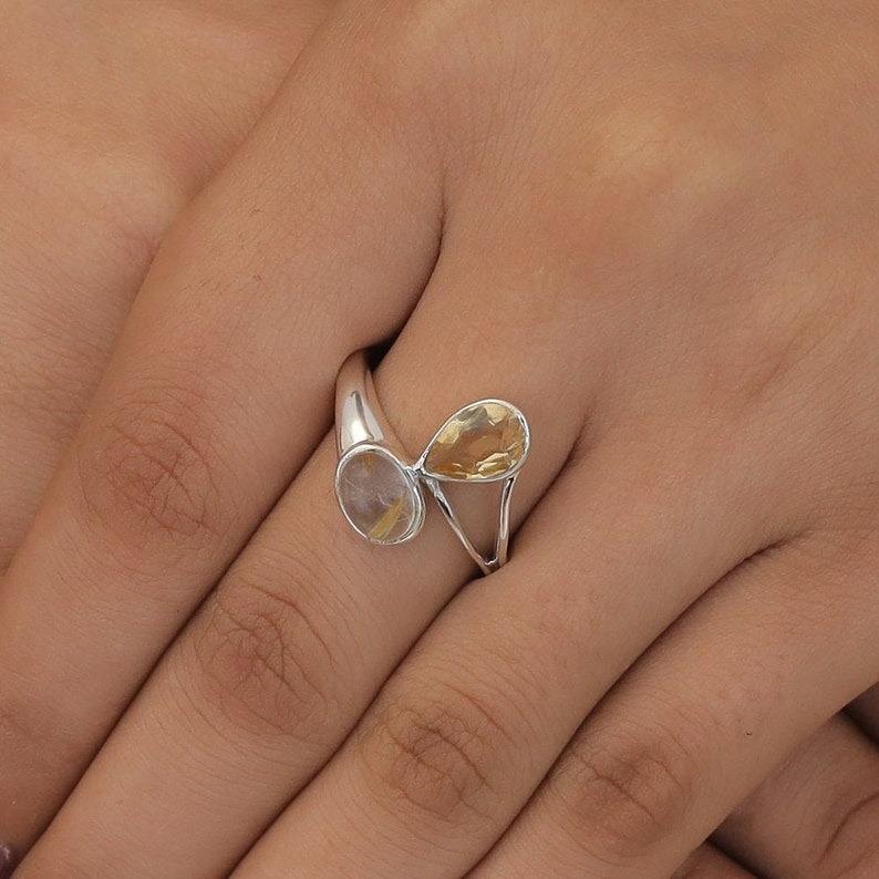 925 plata esterlina sólida hecha a mano piedra preciosa citrino Spinner anillo 925 Plata estampada Natural mejor diseño anillo joyería