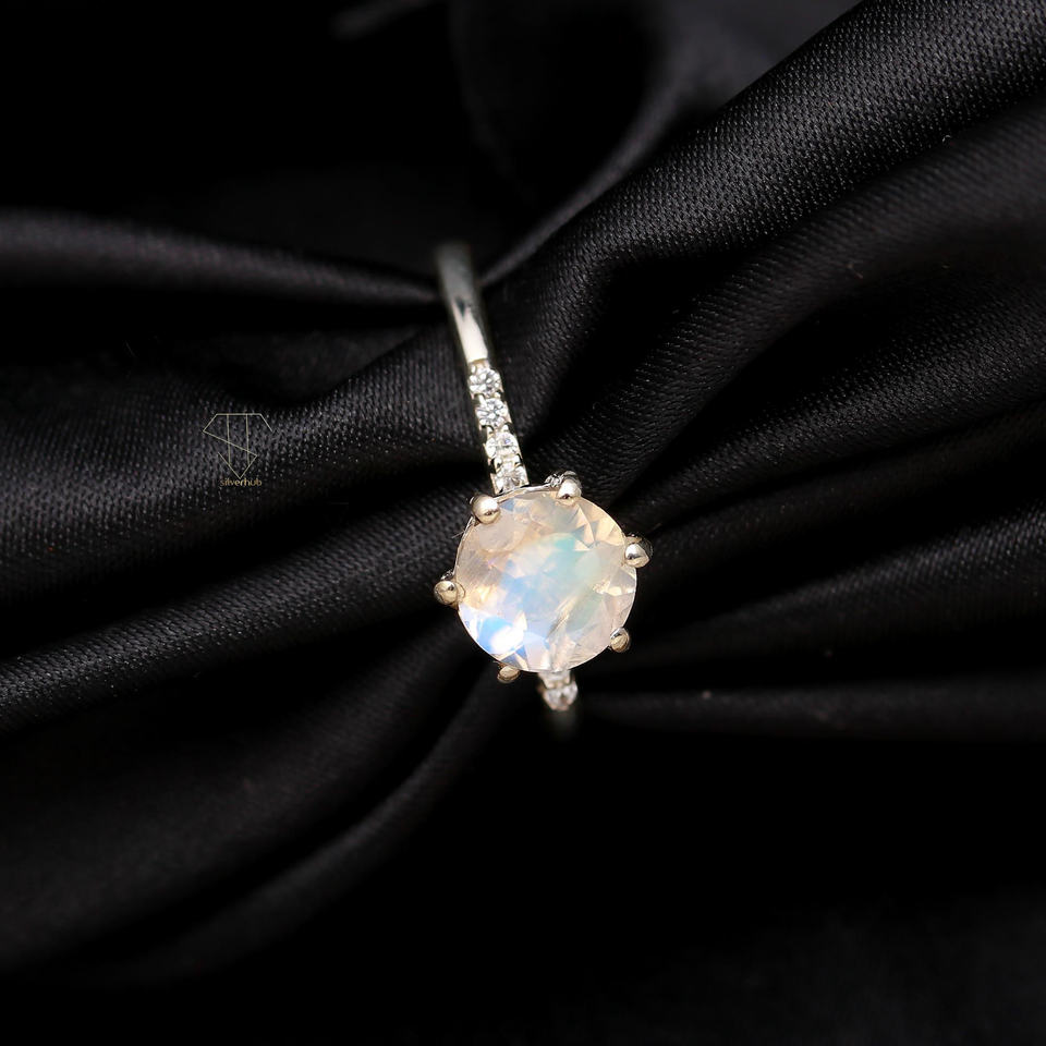Palabra clave:Rainbow Moonstone Anillo de piedras preciosas naturales Joyería