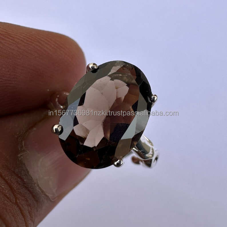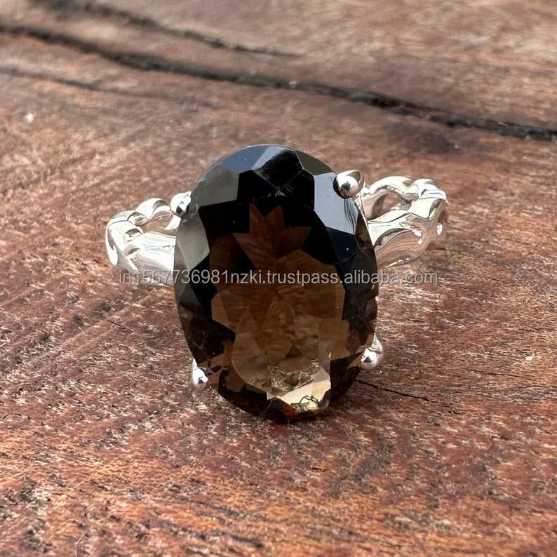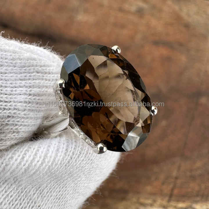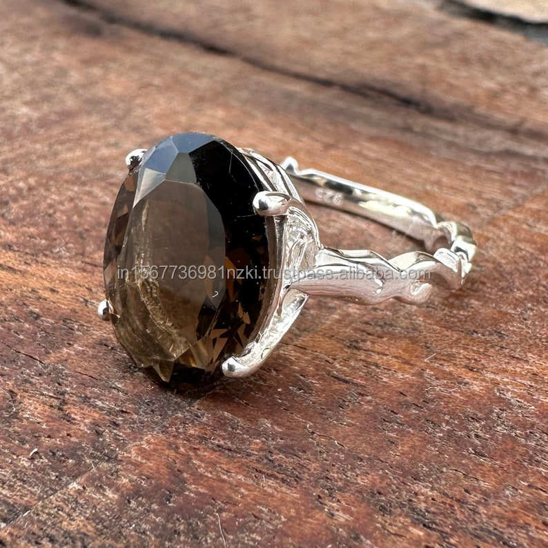 Nombre del producto:Anillo de plata esterlina 925 Cuarzo ahumado
