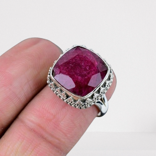Anillo hecho a mano de plata de ley sólida 925 con cabujón de piedras preciosas de rubí Natural, joyería estampada de mejor diseño para bodas