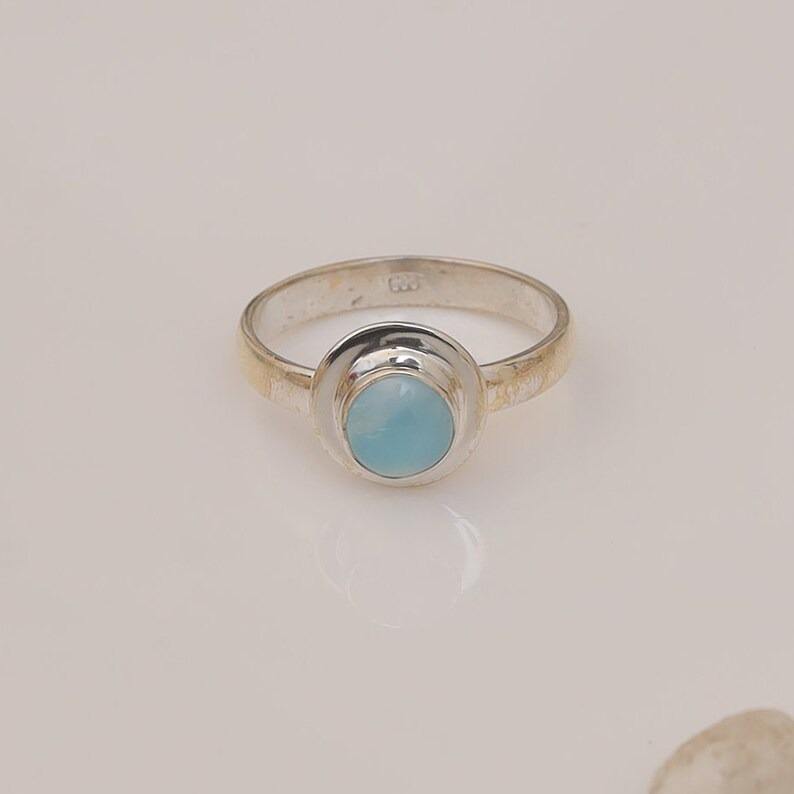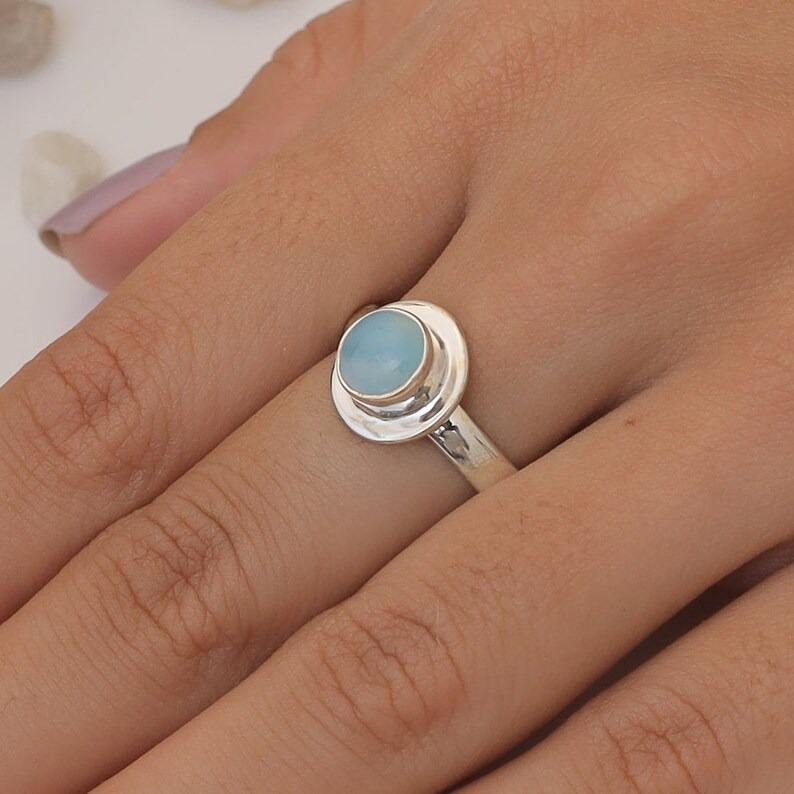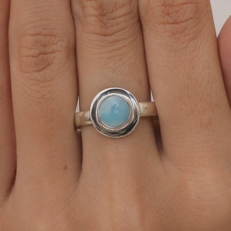 925 sello mejor calidad boda diseñador regalo anillo 925 plata esterlina hecho a mano piedras preciosas Larimar Spinner promesa anillo joyería