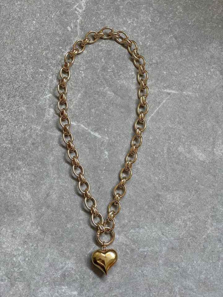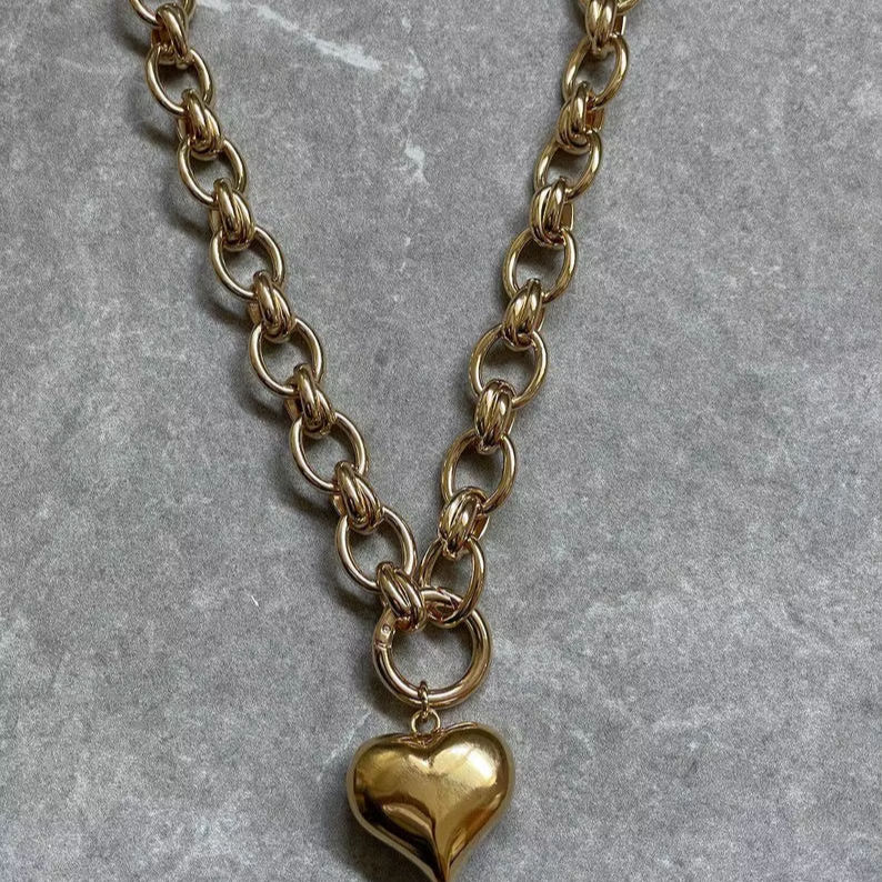Palabras clave:Collar de plata con cadena de corazón chapado en oro de 14K
