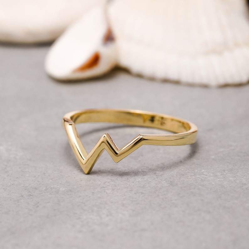 Anillo de Montaña Minimalista de Plata de Ley 925 con Baño de Oro Vermeil de 14K, Diseño Zig Zag, Hecho a Mano, Tema Natural, Joyería Cristiana, Regalo de San Valentín