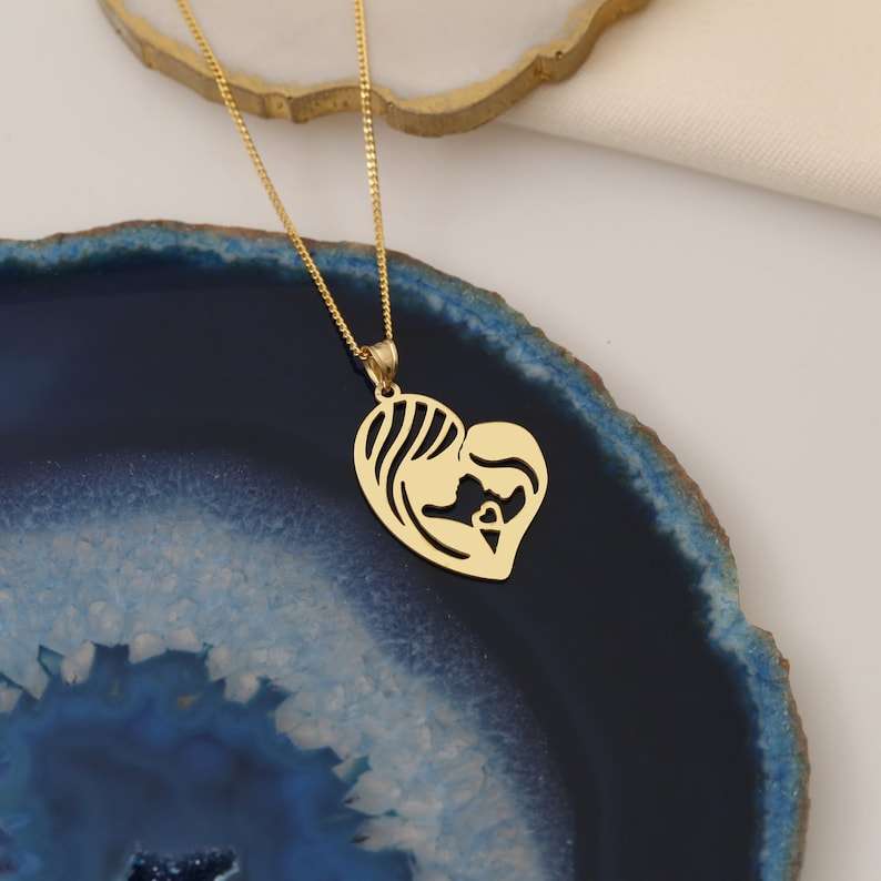 Collar de Plata de Ley 925 con Baño de Oro Vermeil de 14K, Diseño Cristiano de Corazón de Madre e Hija, Colgante Minimalista con Dije de Mamá y Bebé, Regalo para el Día de la Madre