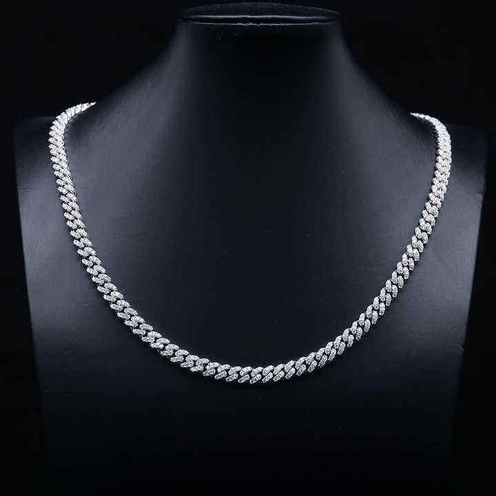 Cadena de eslabones cubanos de plata de ley 925 con moissanita de laboratorio de 8 mm, joyería de moda hip hop con incrustaciones para fiestas de compromiso