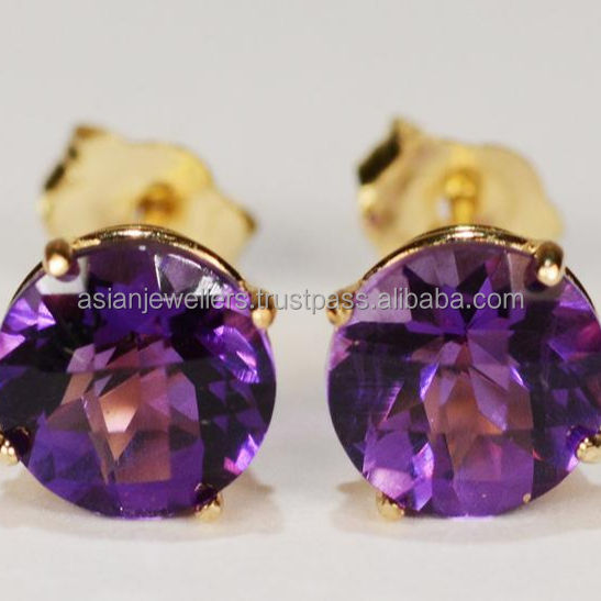 Pendientes de piedras preciosas hechos a mano de cuarzo amatista de Plata de Ley 925 hermosa joyería chapada en oro