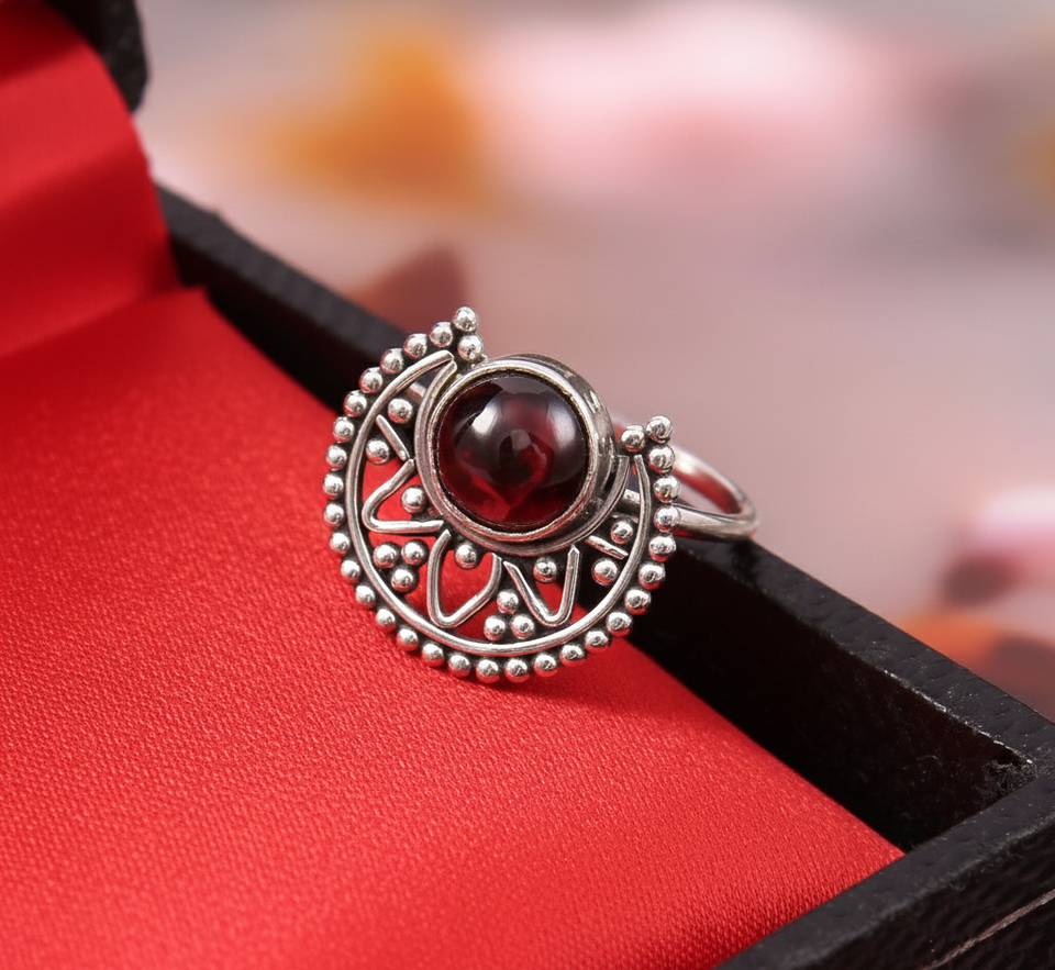 Palabra clave:Anillo de granate de plata 925.