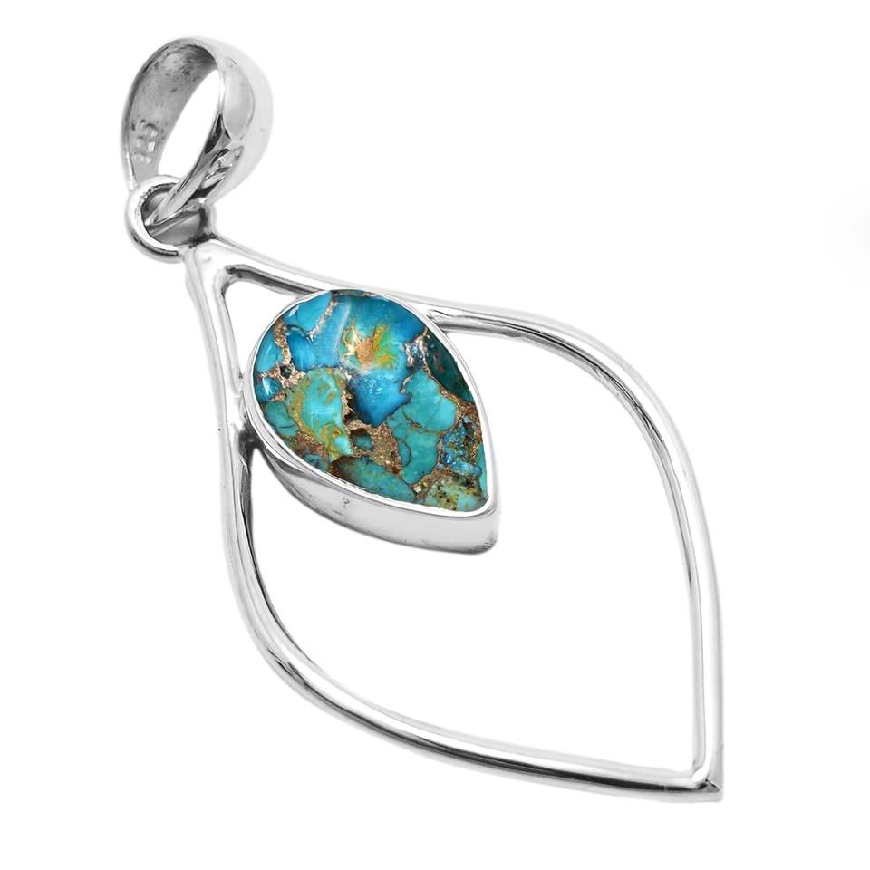 Plata de Ley 925, cobre, turquesa, piedra preciosa, forma de pera, colgante de Color azul, regalo de boda perfecto para el amor con joyería de sello 925