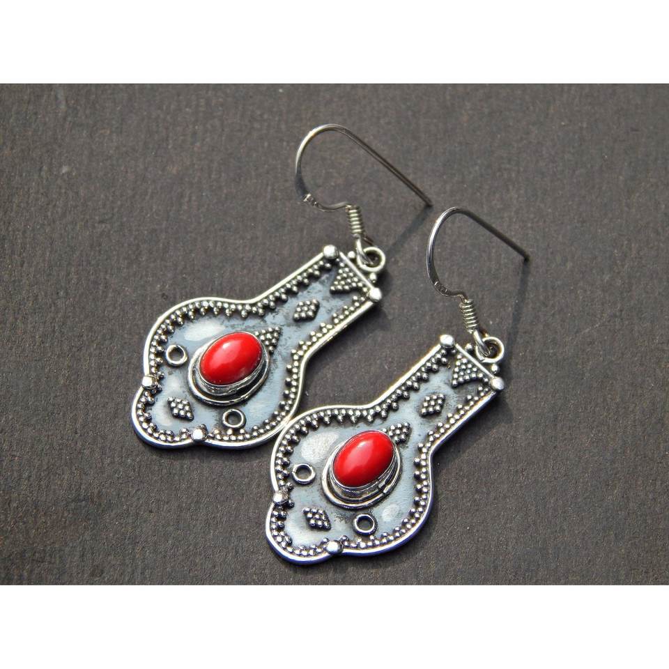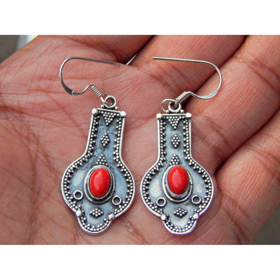 Pendiente de Coral de Plata de Ley 925 con piedras preciosas, joyería de cristal fino hecha a mano, artículo de regalo para niñas y mujeres