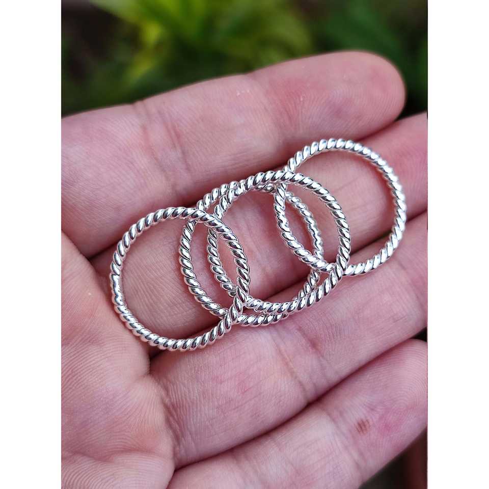 Anillos midi delicados hechos a mano de plata de ley 925, anillos apilables de alambre trenzado unisex para los dedos del pie y los nudillos
