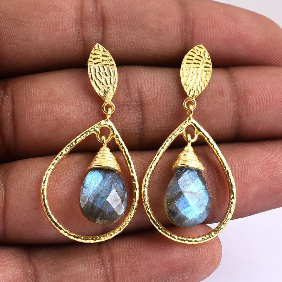Pendientes colgantes de labradorita de corte de pera chapada en oro de Plata de Ley 925, regalo de boda y fiesta de moda para mujeres y niñas