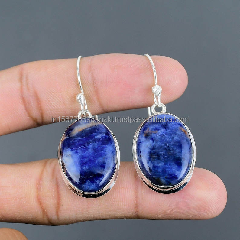 Pendiente de Plata de Ley 925, pendientes Vintage hechos a mano, joyería de piedras preciosas naturales de sodalita, pendientes de último diseño, regalos para ella
