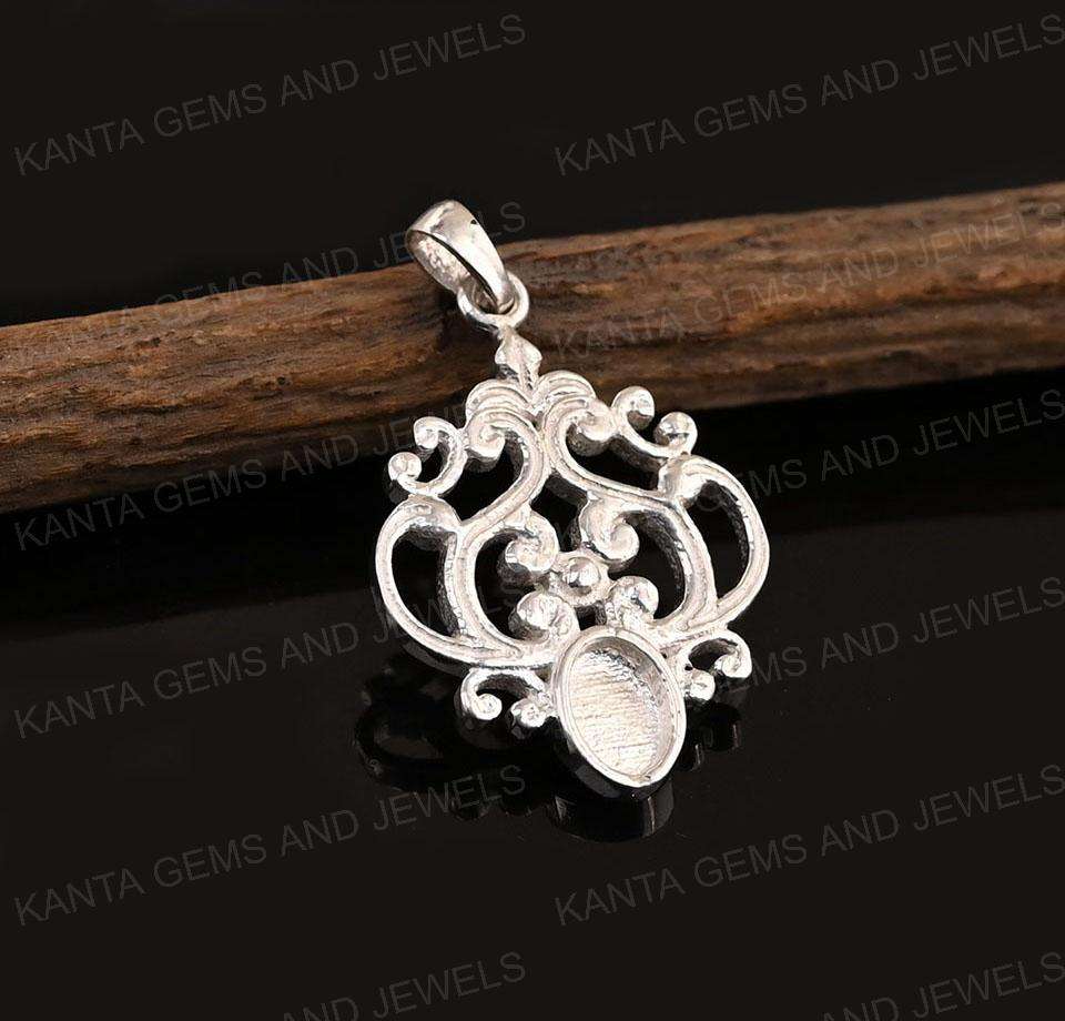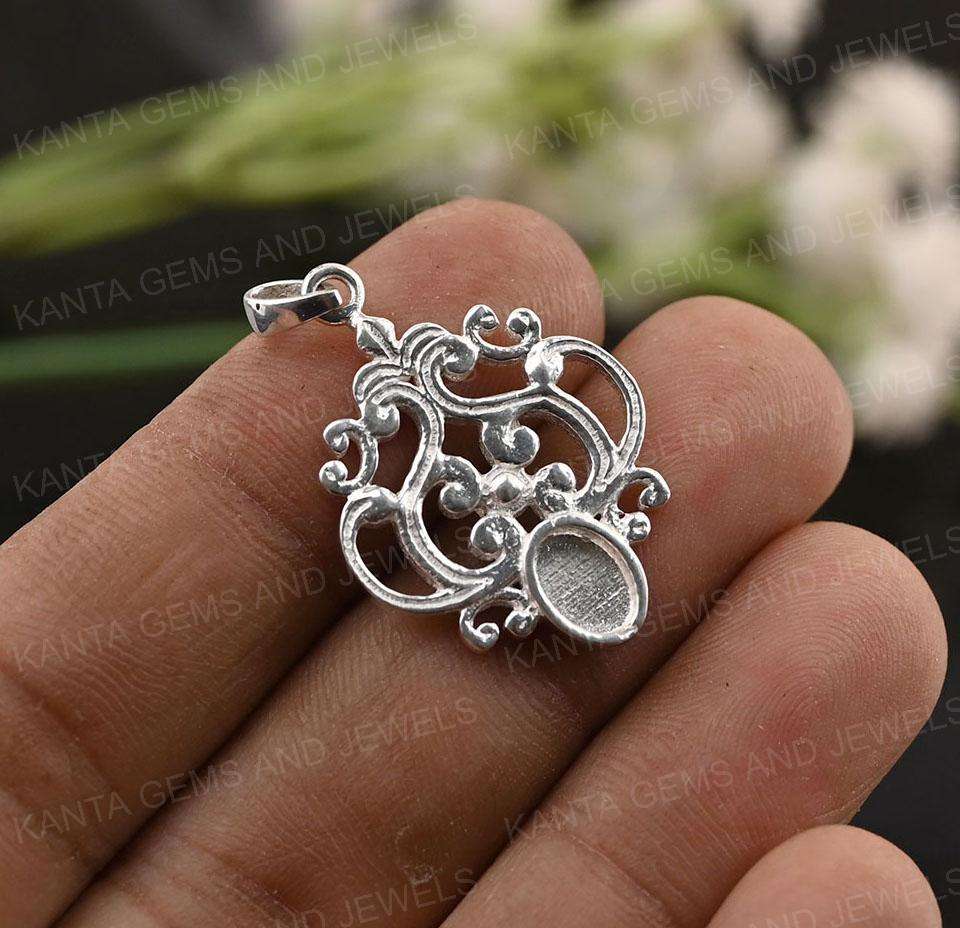 Colgante Ovalado de Plata de Ley 925 de 25 mm con Diseño de Filigrana Personalizado, Ecológico, para Resina, Cenizas, Piedras Preciosas