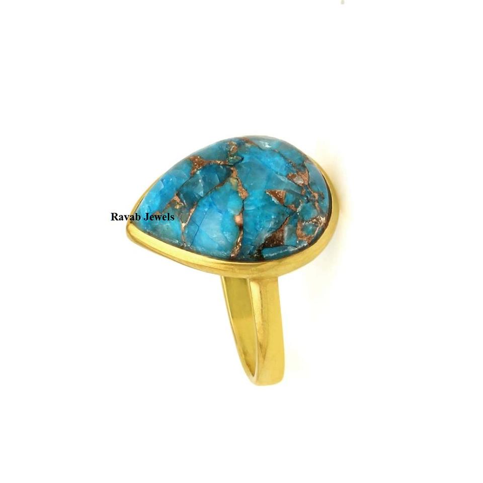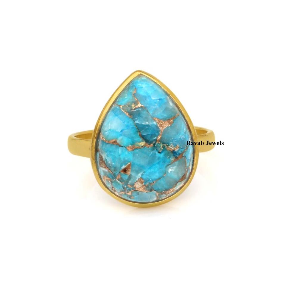 Nombre del producto:Anillo Chapado en Oro de Plata de Ley con Gema de Turquesa Cobre Azul