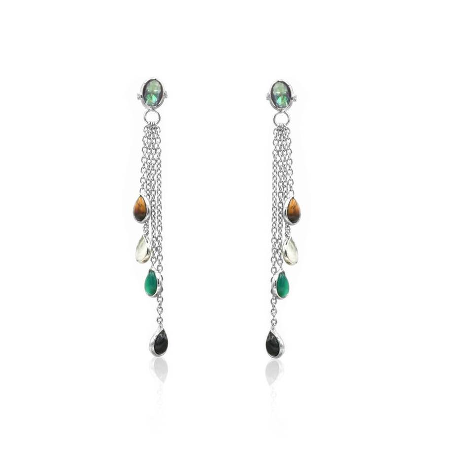 Pendientes de moda de Plata de Ley 925 con ónix verde Natural, ónix negro, piedra lunar, Ojo de Tigre, bisel de cuarzo místico, joyería de piedras preciosas