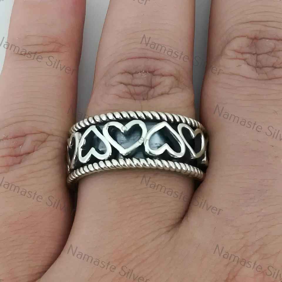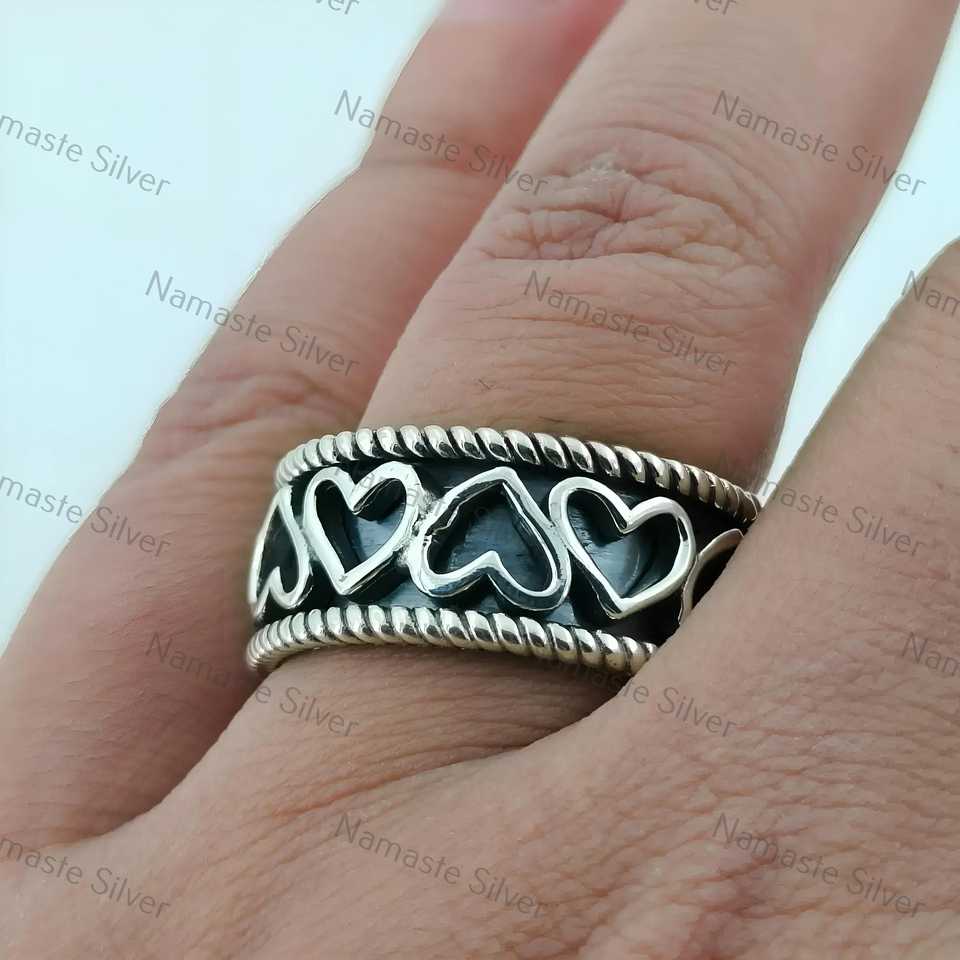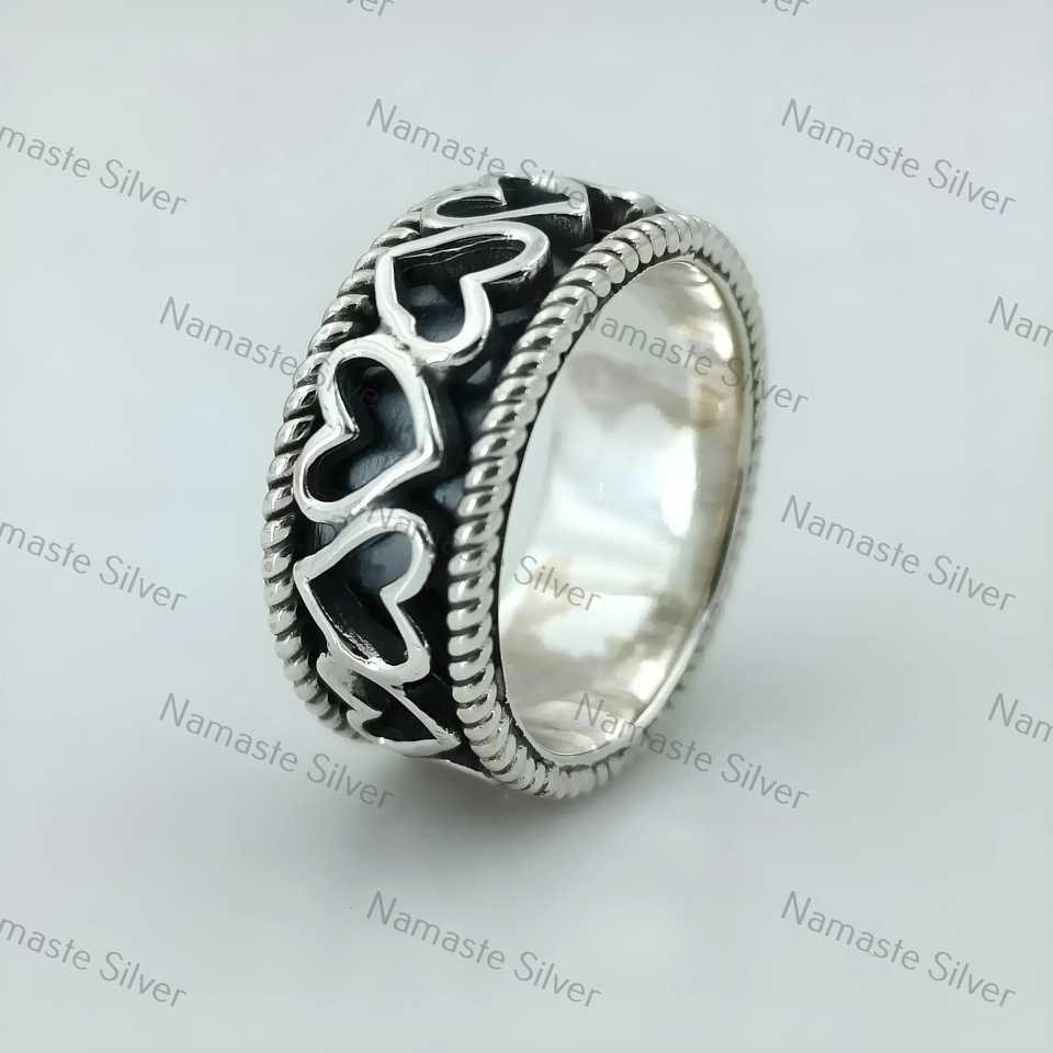 Anillo Giratorio de Plata de Ley 925 Hecho a Mano con Diseño de Corazón Conectado, Anillo de Meditación para el Dedo Pulgar, Regalo para Aliviar la Ansiedad