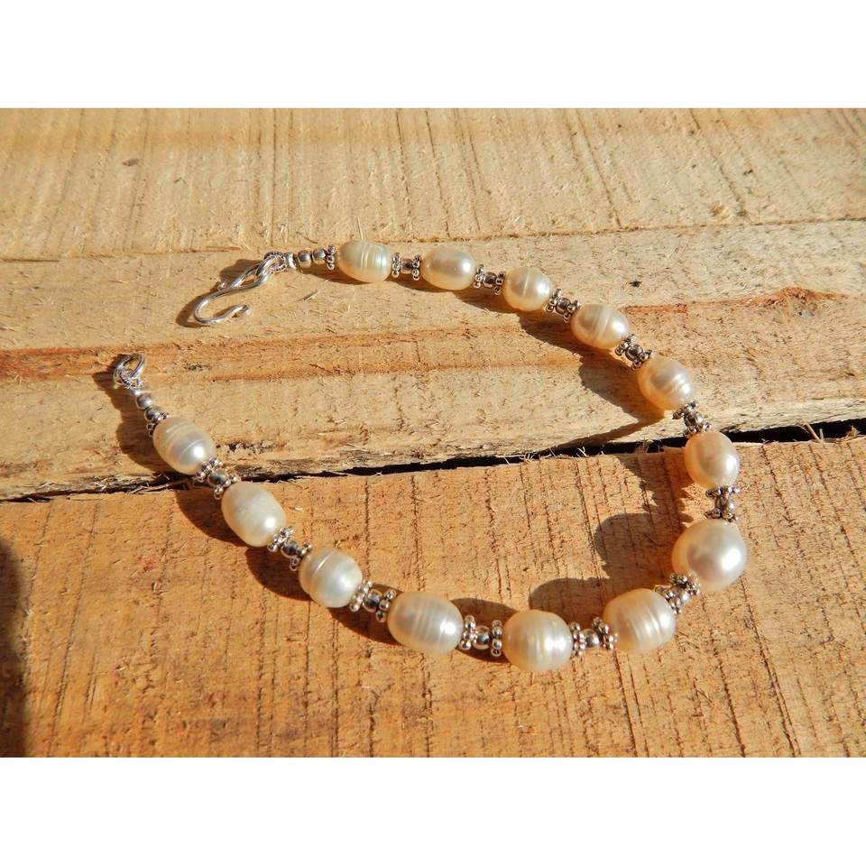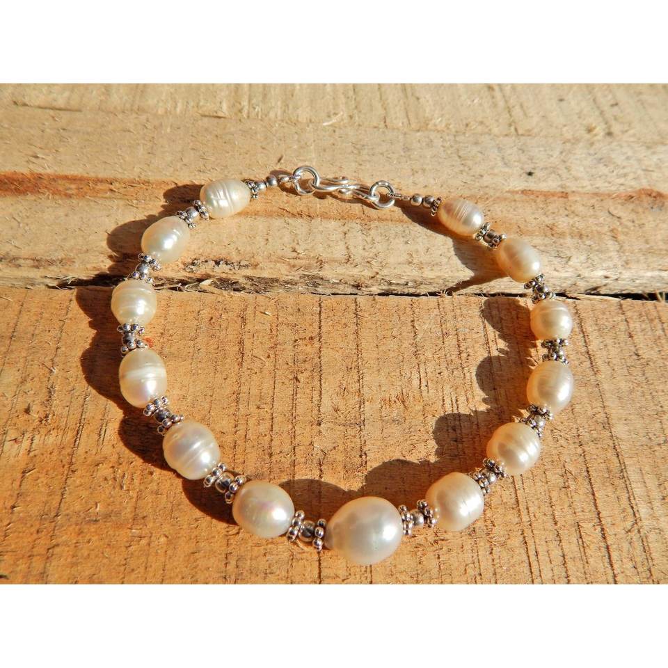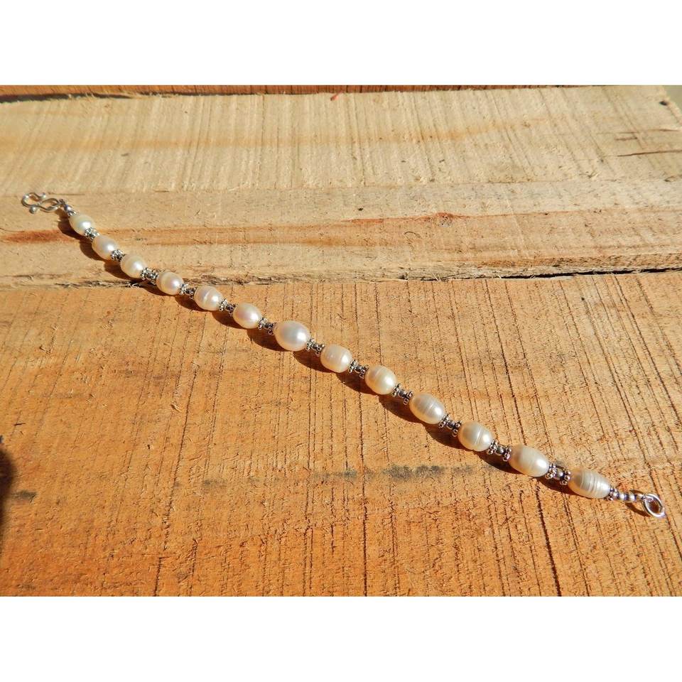 Pulsera de cuentas de perlas de agua dulce de plata esterlina 925 Pulsera de perlas naturales de piedra natal de junio