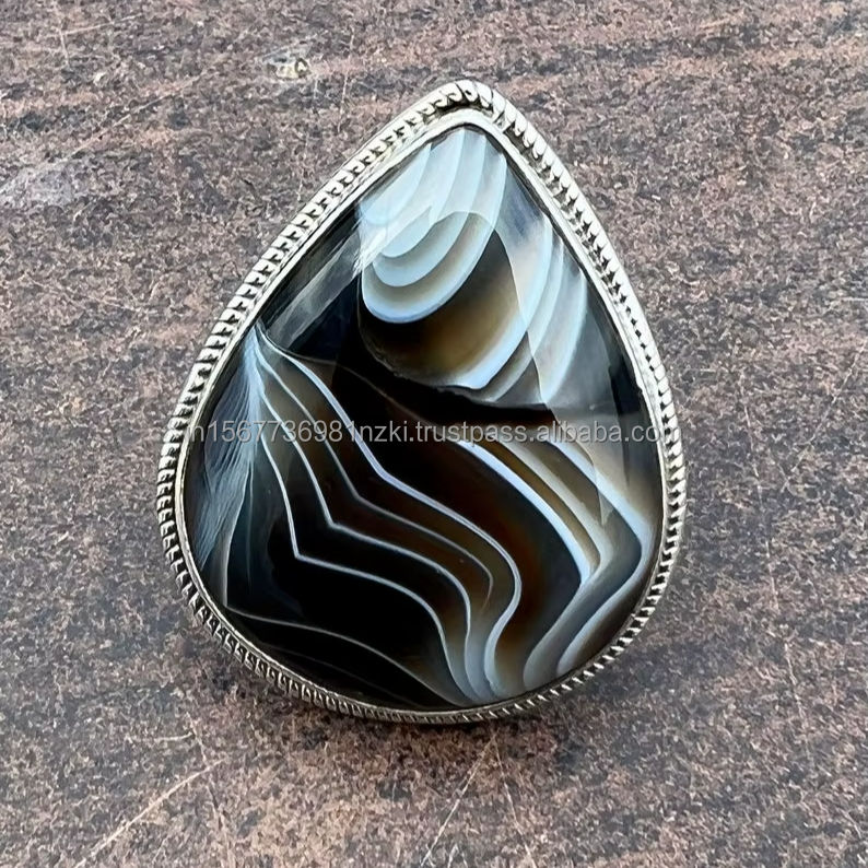Nombre del producto:Anillo de Plata de Ley 925 Ágata de Botswana