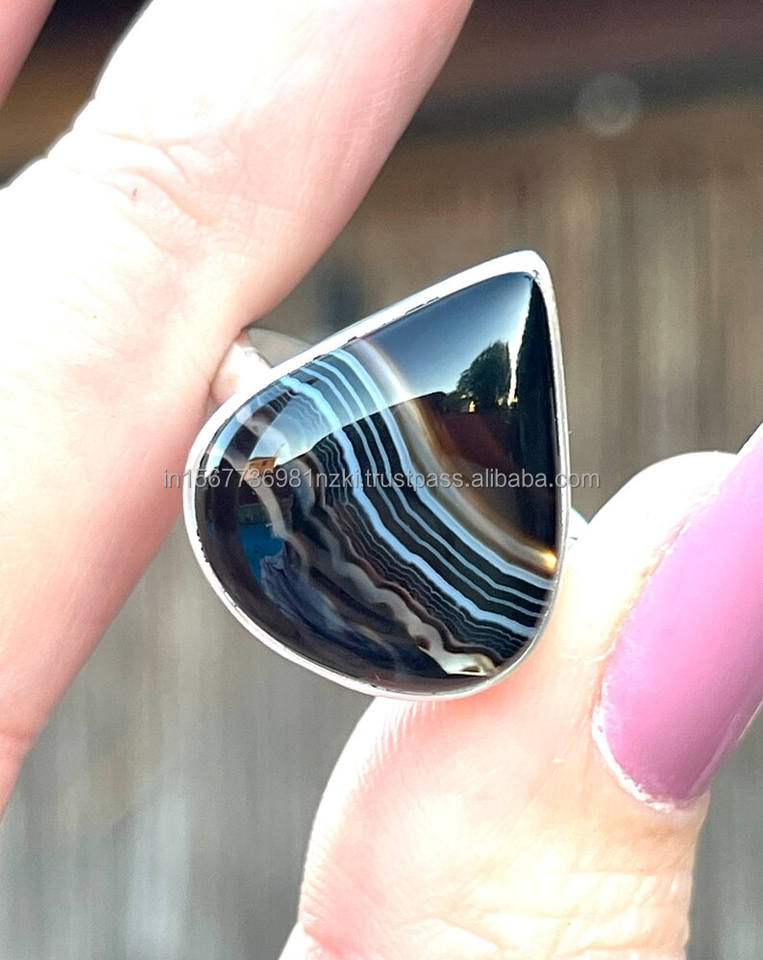 Nombre del producto:Anillo de Plata de Ley 925 Ágata de Botswana