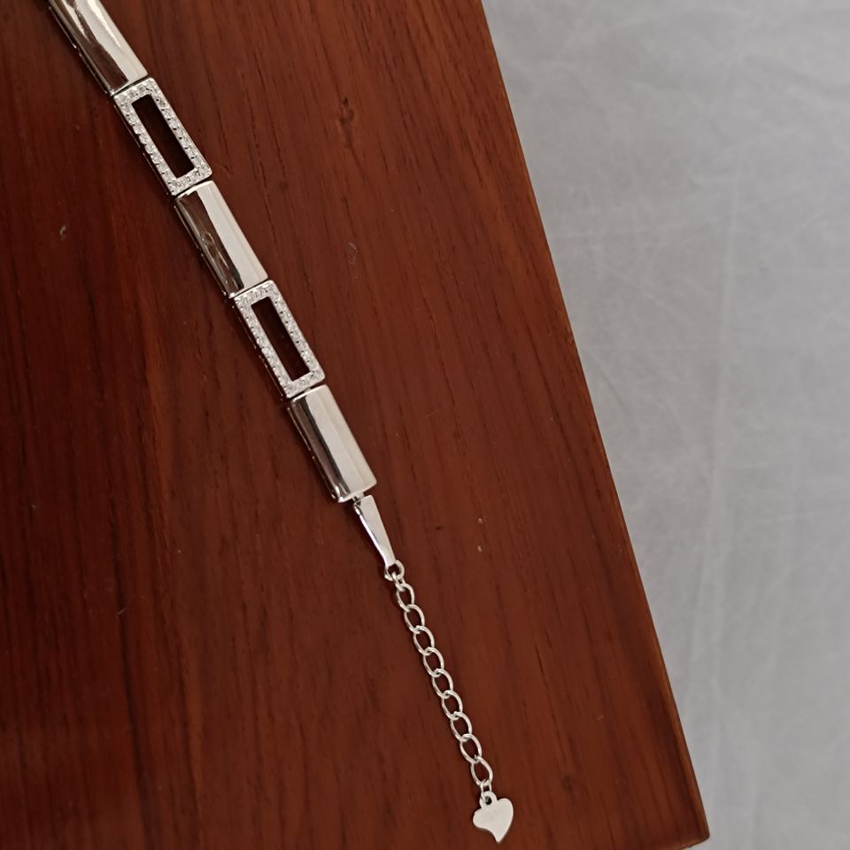 Brazalete de Plata de Ley 925 para Mujer, Diseño Geométrico Rectangular con Micro Pavé de Diamantes, Acabado en Rodio, Cadena de Diseño Moderno, Regalo
