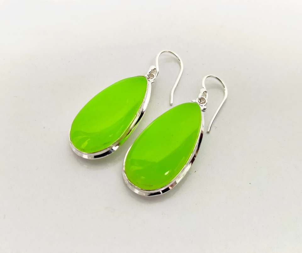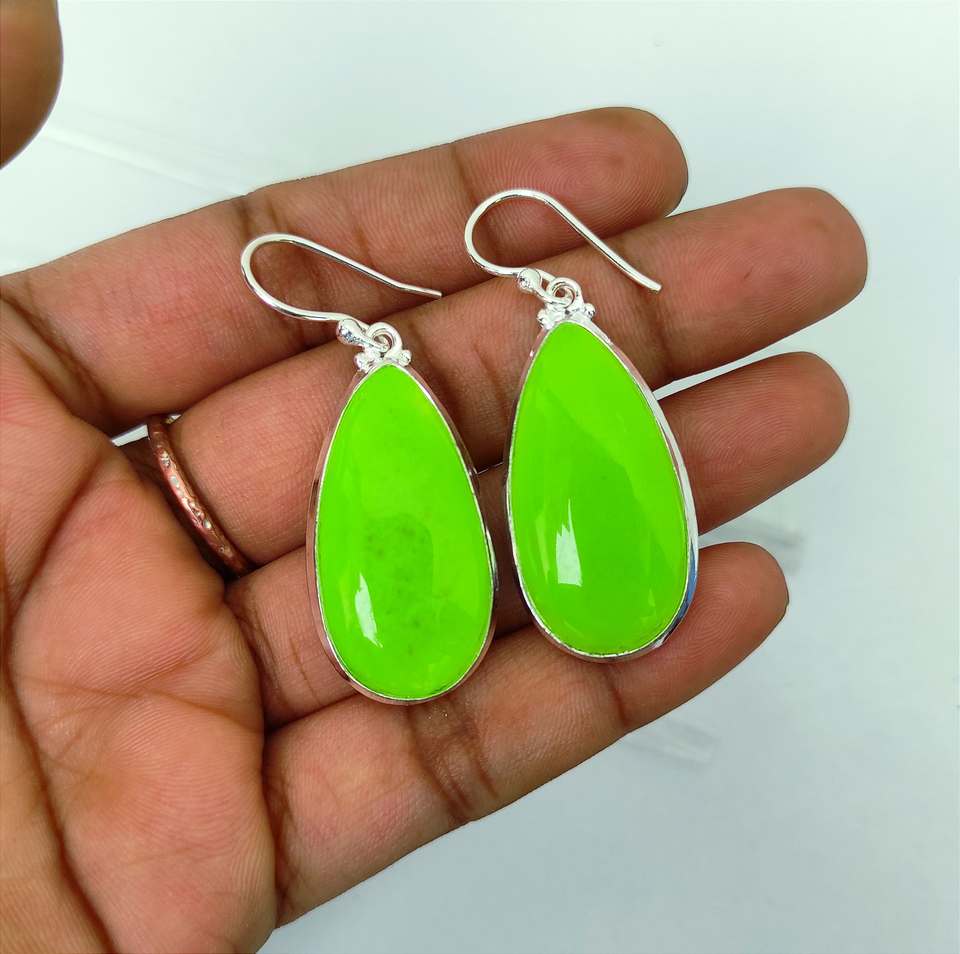 Pendientes colgantes de Jade verde de Plata de Ley 925, joyería de moda colgante en forma de pera para regalo